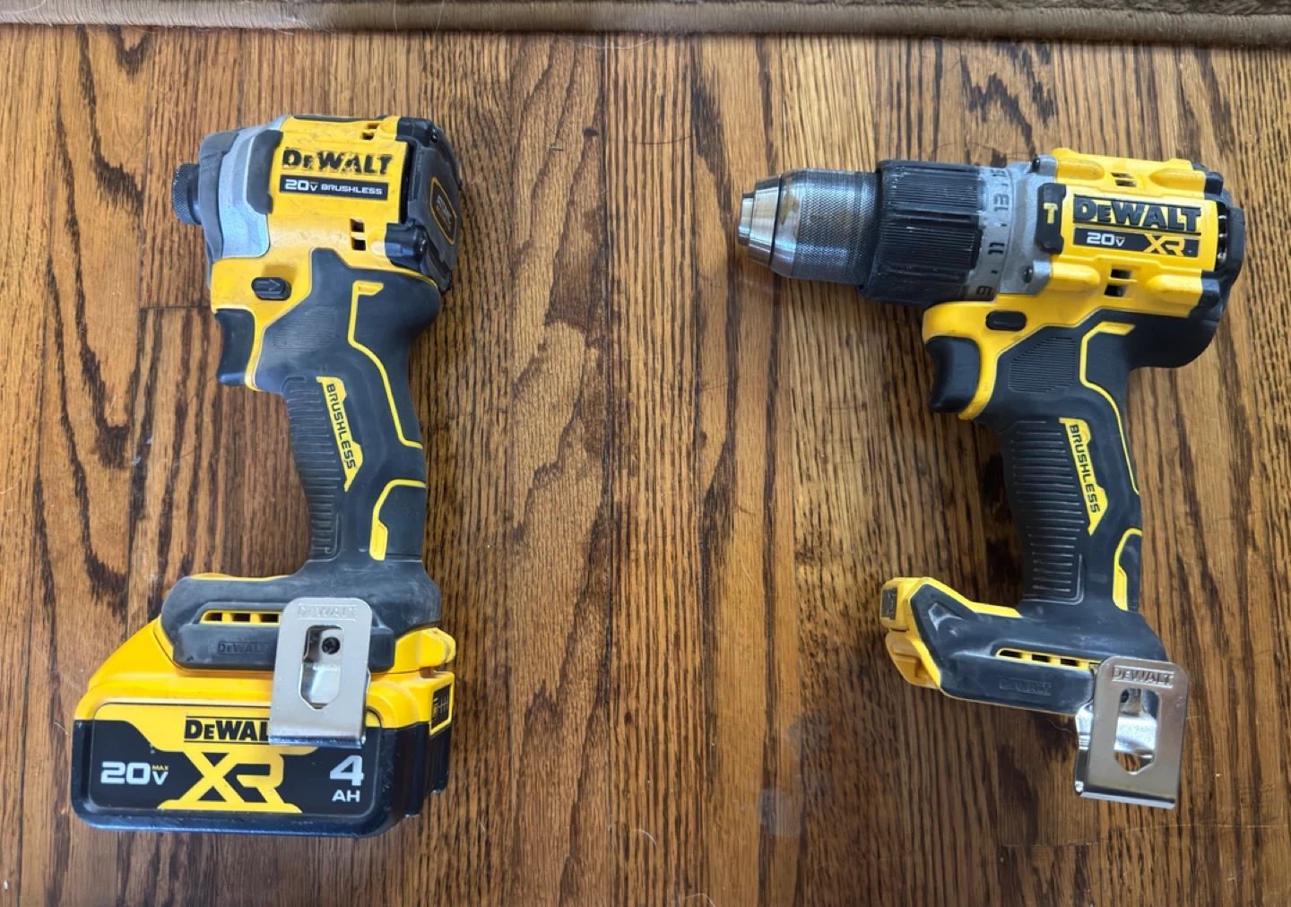 Selling a DeWalt 20V XR combo set! Includes both the impact driver and drill. Comes with a 4Ah battery and charger. Great for any DIY projects!