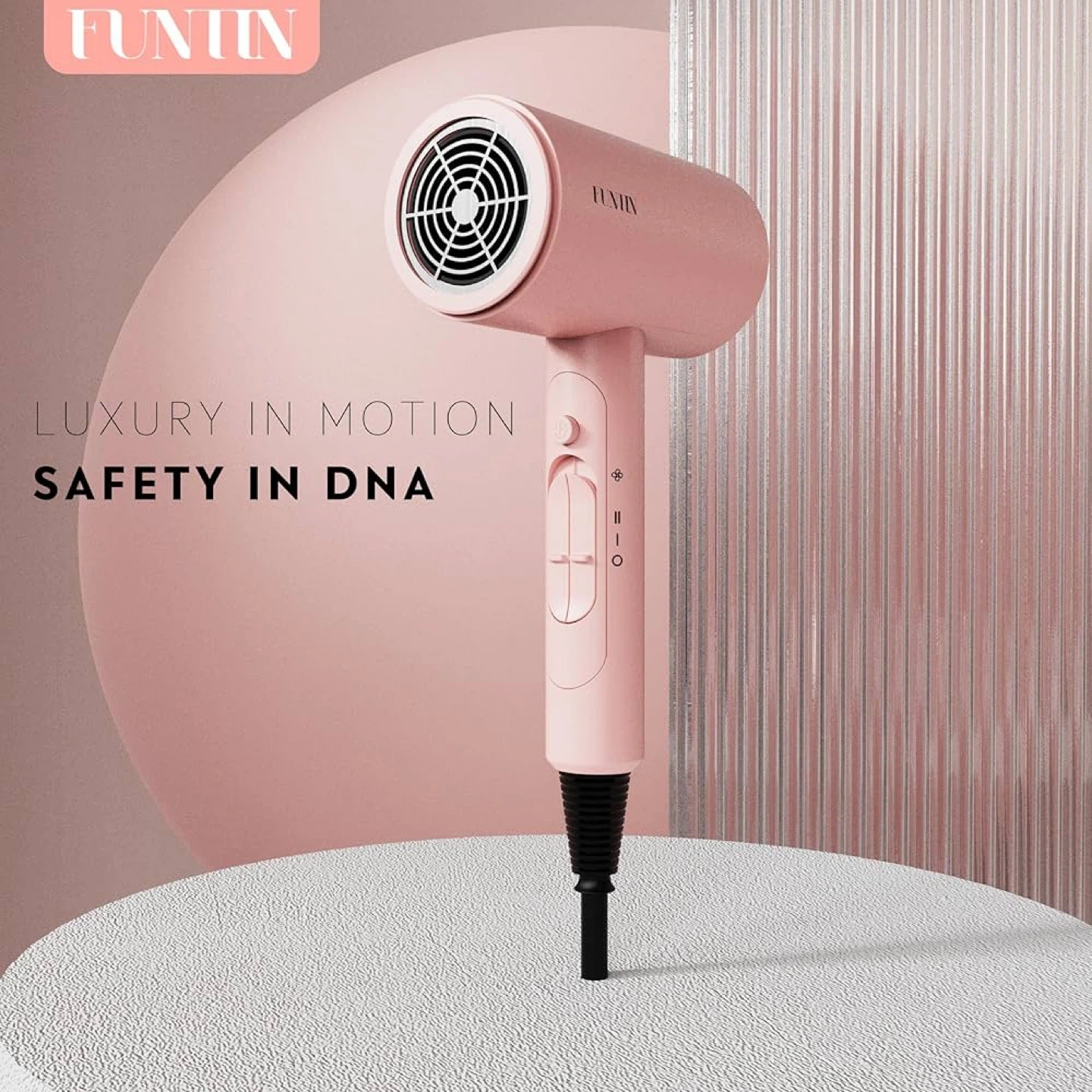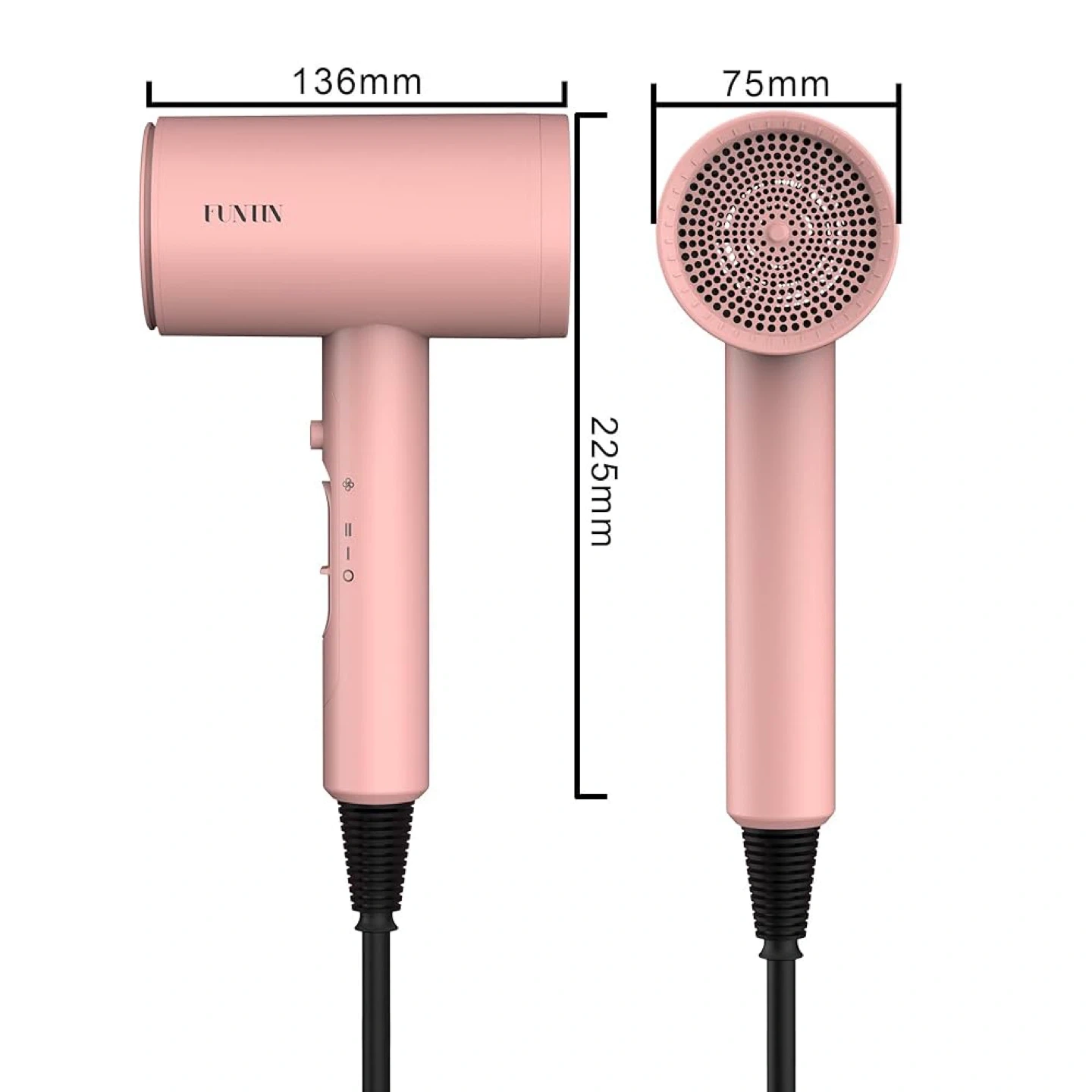 Brand FUNTIN Colour Baby Pink Material Ceramic Wattage 1800 watts Power source Corded Electric Special feature blow, comb, hot, style 💘ULTRA-FAST DRYING: Intelligent Thermostat Technology combines high-velocity heated air and ionized air for ultra-fast drying with no heat damage. Reduce the frizz and could dry your 4C thick hair in 1-3 min. 💘REAL 1800W POWERFUL OUTPUT: Products passed the U.S. UL859 and CPC certification approved US ALCI Safety Plug to better protect you during hair drying. 💘POWER AND VERSATILITY FOR EVERY HAIR TYPE: Powerful, fast-drying hair dryer for straight, wavy, curly, and coily hair With 3 kinds of accesssories: DIffuser, Brush and Nozzle! 💘ALL-AROUND BLOW DRYER: Intelligent Motor, Thermostatic temperature control, Negative ion technology....all be builted in body. Independent temperature adjustment switch and wind adjustment switch Powerful,All in one, it is a beautiful hair dryer with power! 💘Foldable stand for hair dryer specially designed for FUNTIN: Offer FUNTIN special hair dryer stand and Travel Organizer. Take it home now!