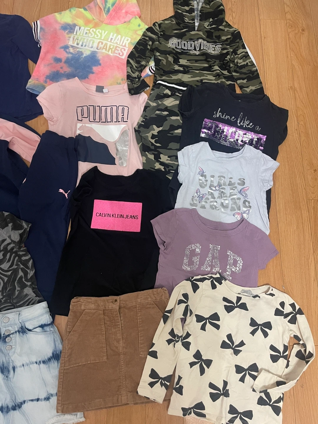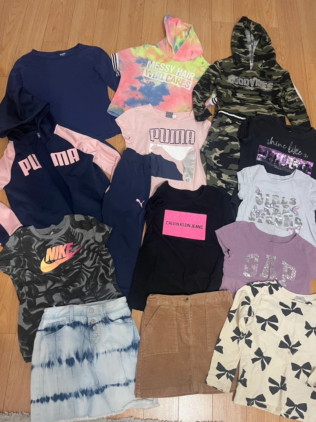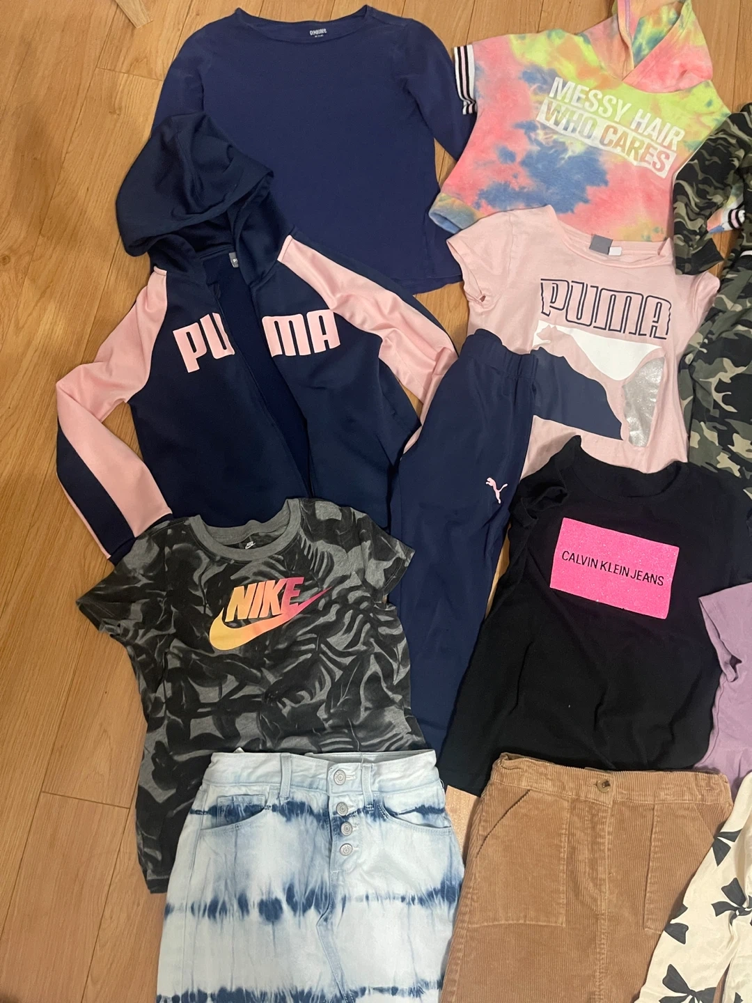 All good condition -Puma leggings have a pin hole as shown in pic and light purple T-shirt has mark on it everything else good ! Guess coat think was worn once or twice All for $40 Thickson and Dundas Whitby
