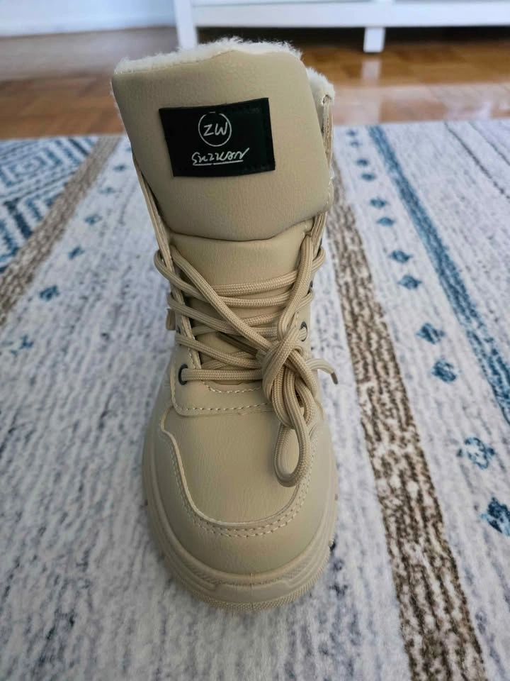 Stay warm and stylish this winter with these high-top fashion boots. Featuring a plush faux fur lining for maximum comfort, durable anti-slip rubber sole for all-weather traction, and a modern chunky sole design. Perfect for casual wear, outdoor walks, or pairing with jeans for a trendy look. Condition: Brand New (never worn, comes in packaging) Color: Beige/Tan Size: 7/7.5 (Women) Features: Faux leather finish, warm inner fleece lining, lace-up closure, durable anti-slip sole, lightweight but sturdy