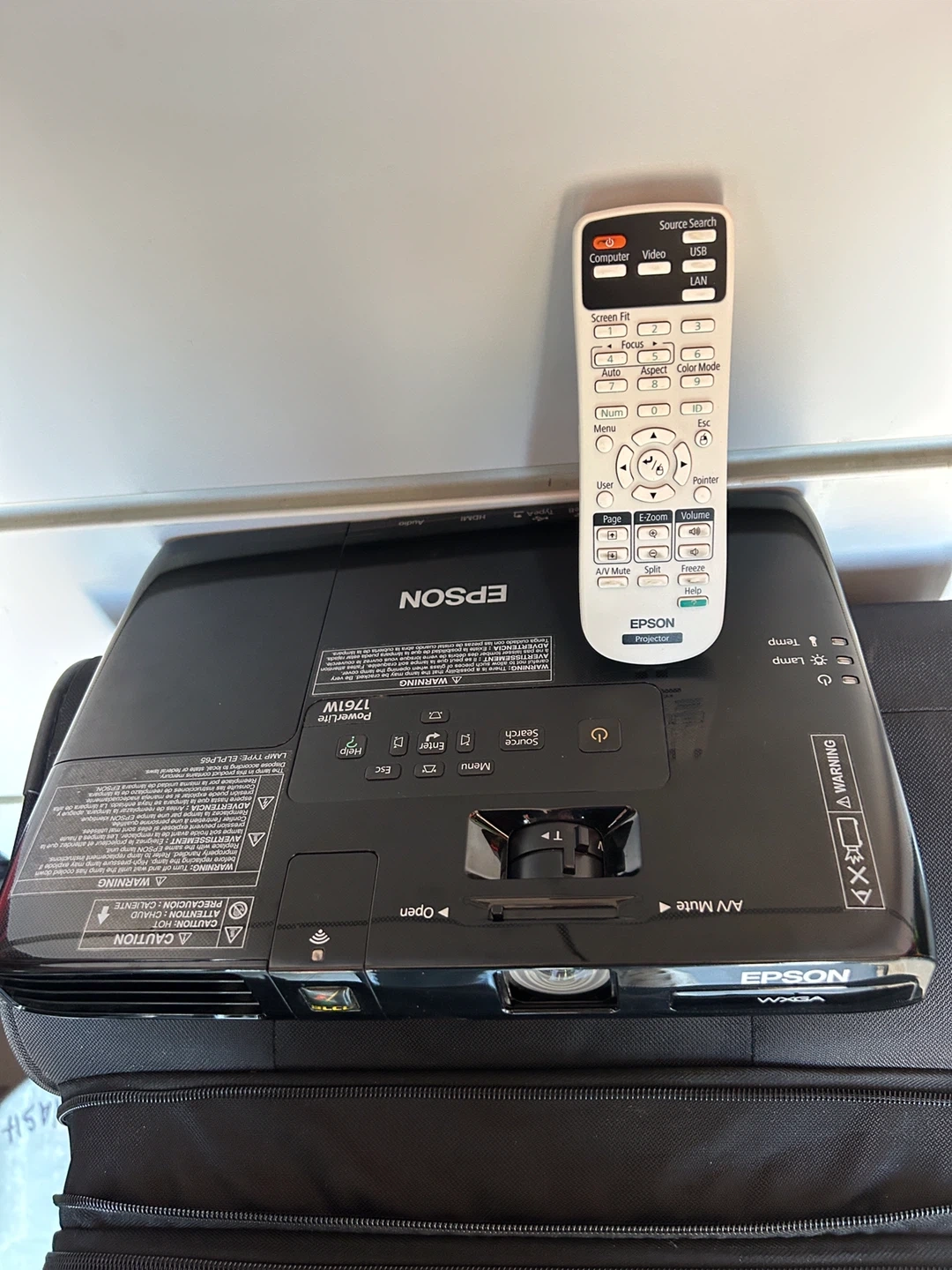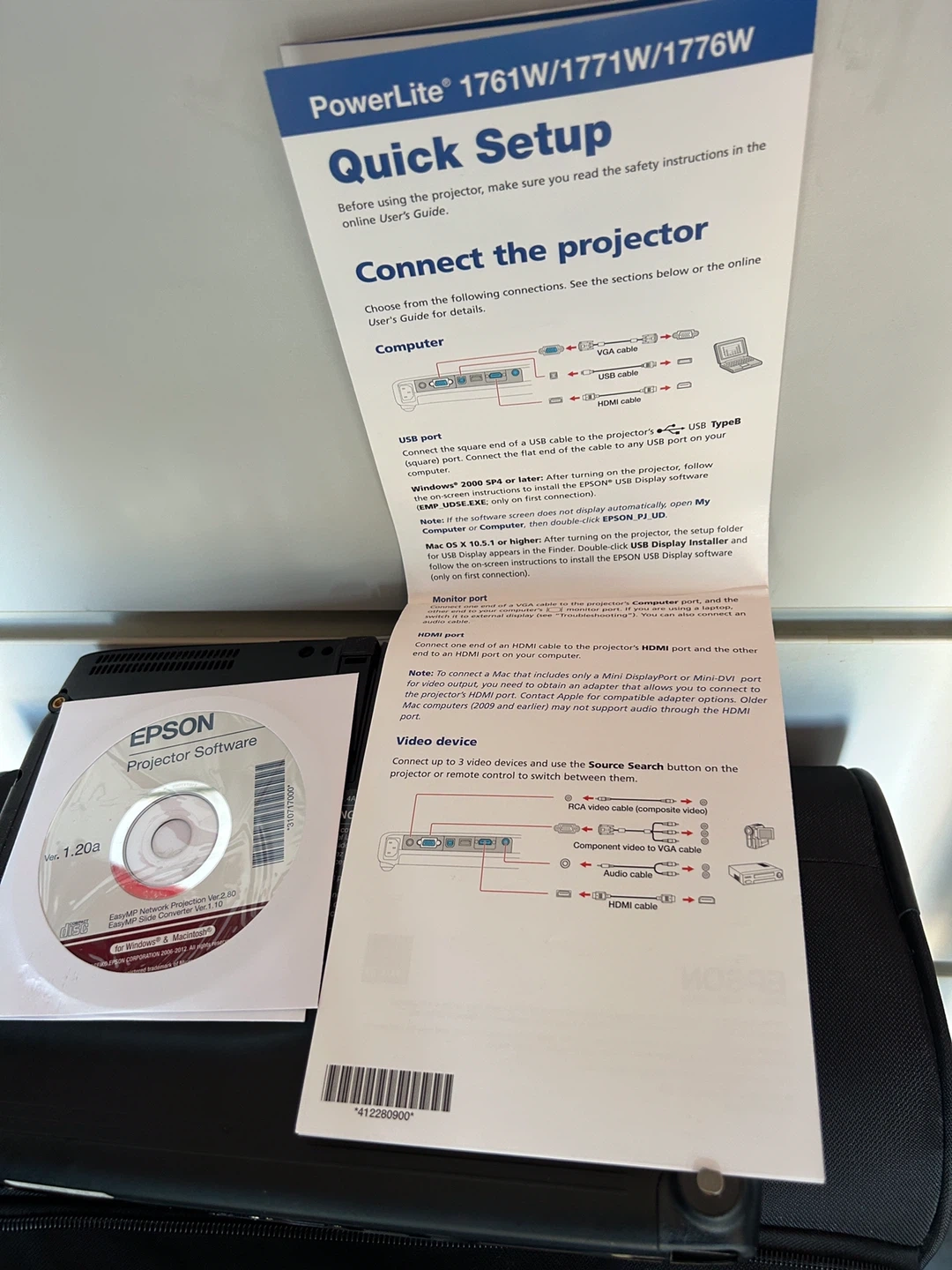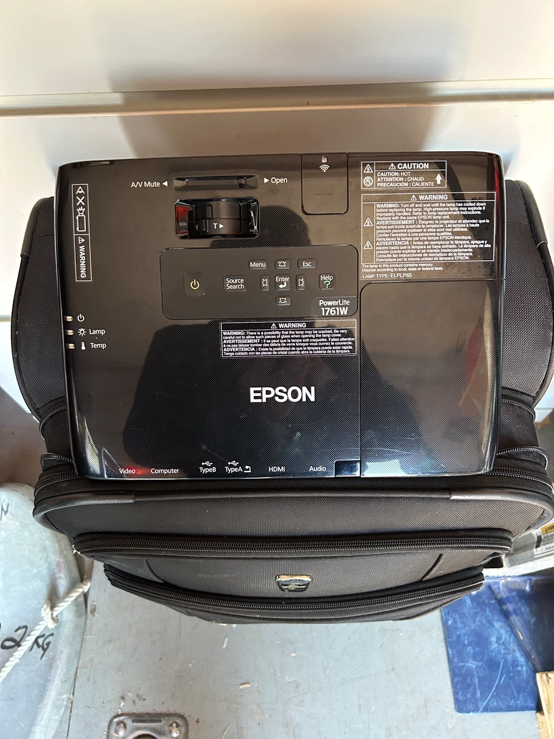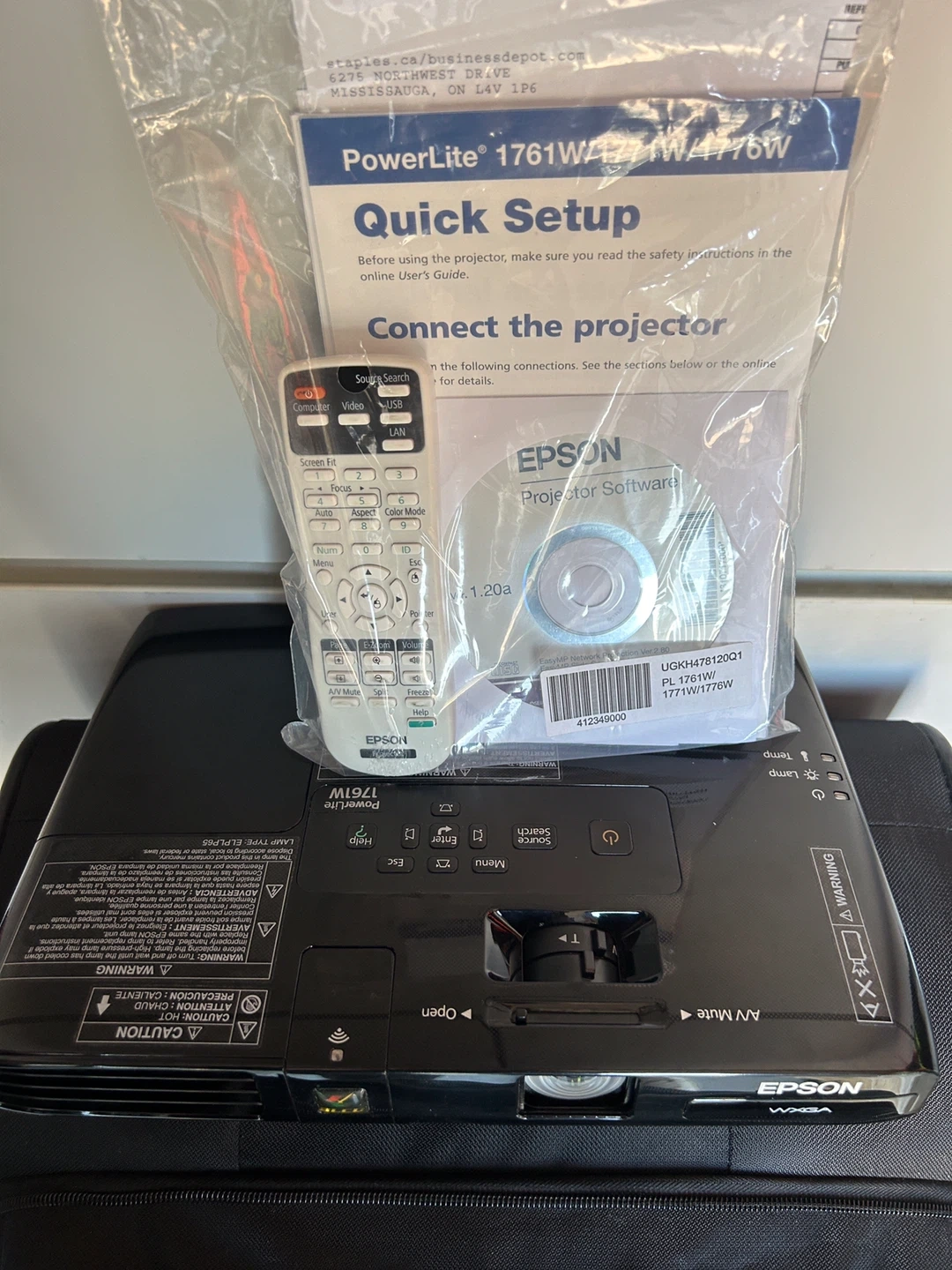 Selling an Epson PowerLite 1761W LCD Projector in good condition! It comes with its remote, software, and quick setup guide. It's ready to connect to your devices via Video, Computer, Type B, Type A, HDMI, and Audio ports. Perfect for presentations or movie nights!