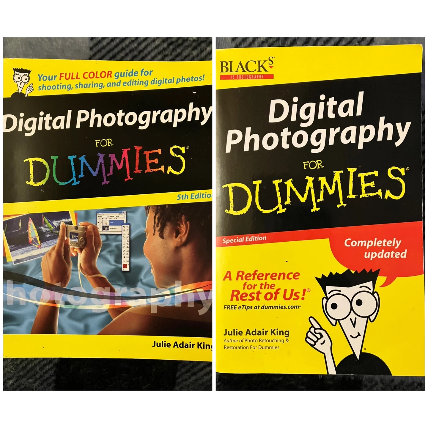 Hi, I am selling two books from the 'Digital Photography for Dummies' series. One is the 5th Edition and the other is a Special Edition. Both are written by Julie Adair King. Great for learning about shooting, sharing, and editing digital photos! Pick up only. (In Scarborough.) Thank you for your interest!
