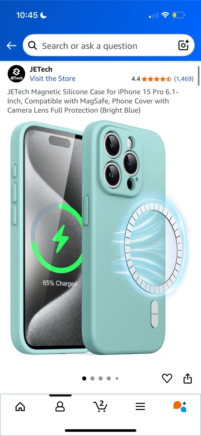 Selling a JETech magnetic silicone case for an iPhone 15 Pro. It's a bright teal colour and offers full camera lens protection. Compatible with MagSafe.