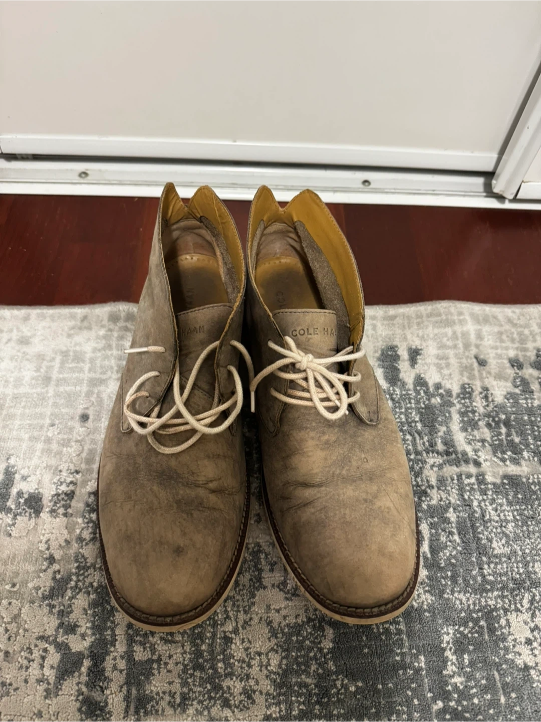 Selling a pair of Cole Haan men's chukka leather boots. They are a size 9.5 in US sizing. These boots are made in India and made from leather. In very good condition $30 Yonge and finch area