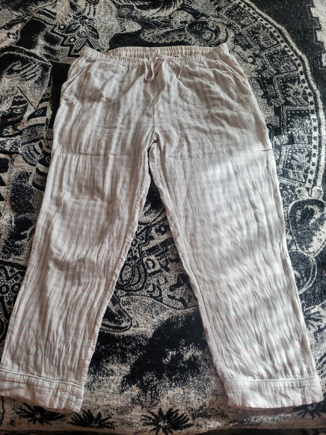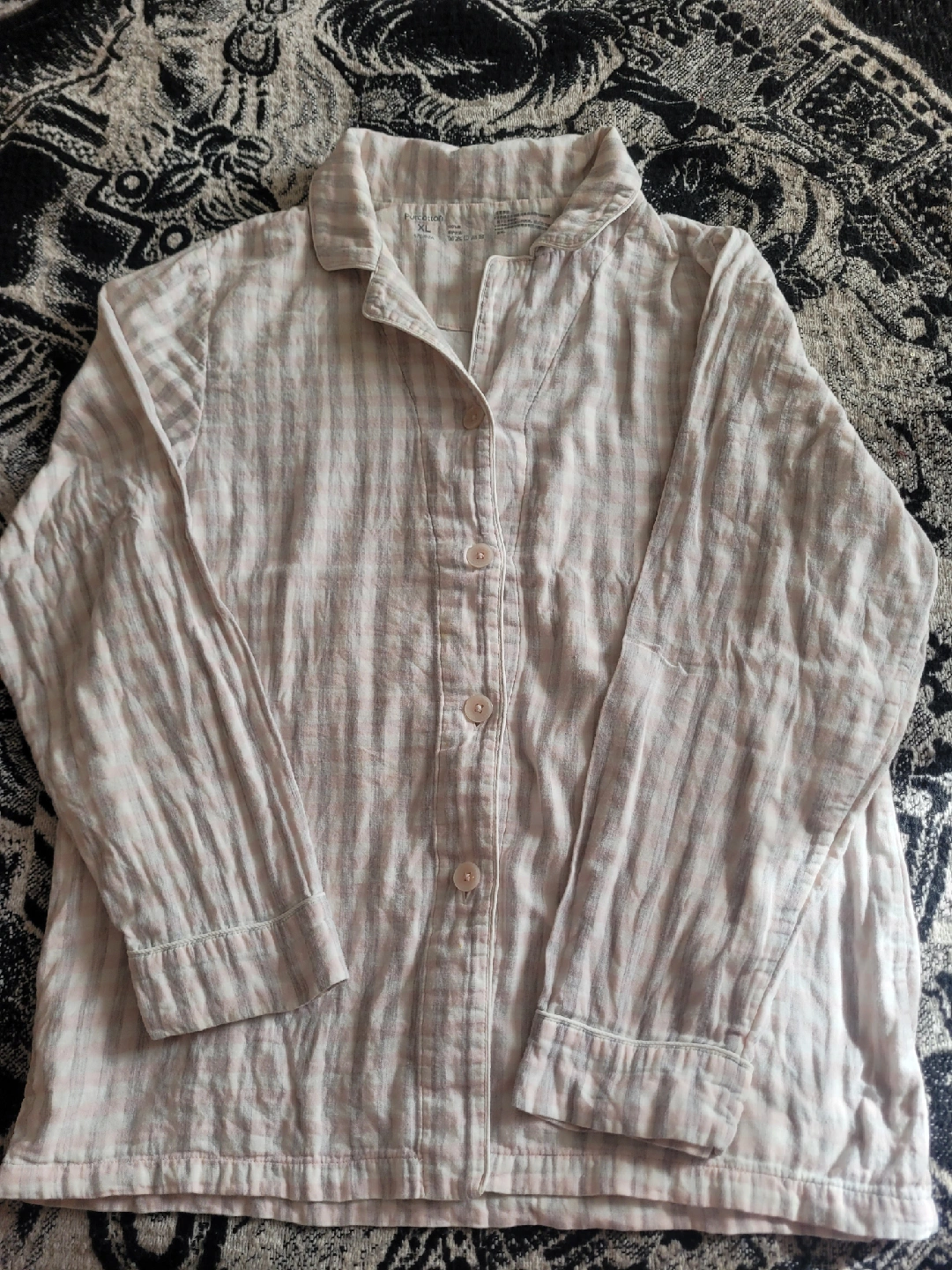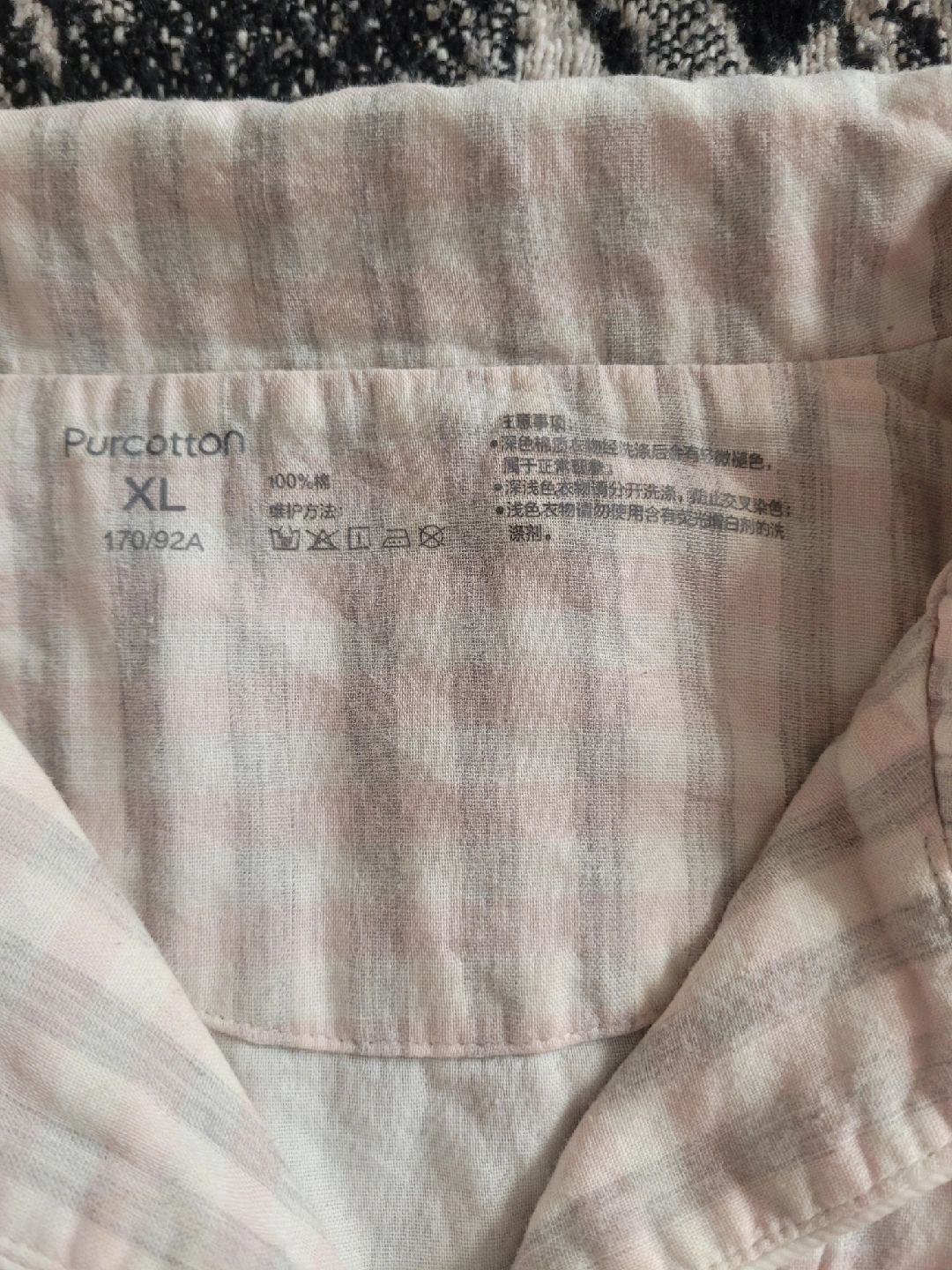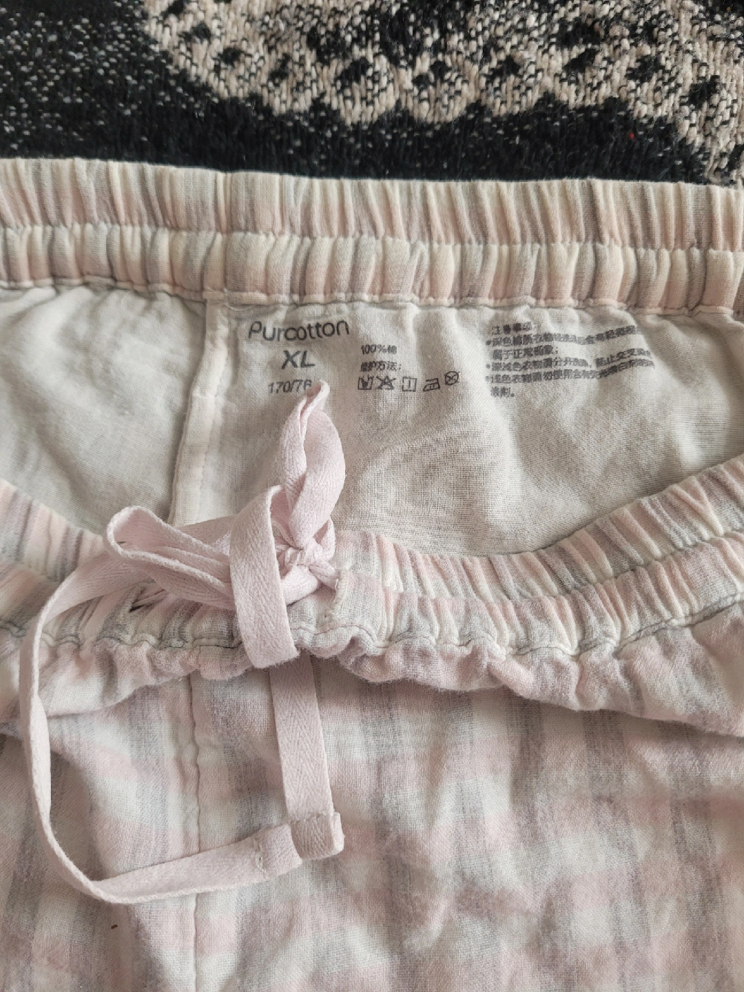 Comfy Purcotton pajama set in size XL. Perfect for lounging around the house or getting a good night's sleep. The material is 100% cotton, making it soft and breathable.