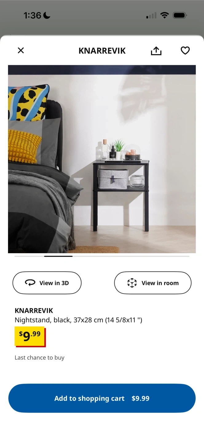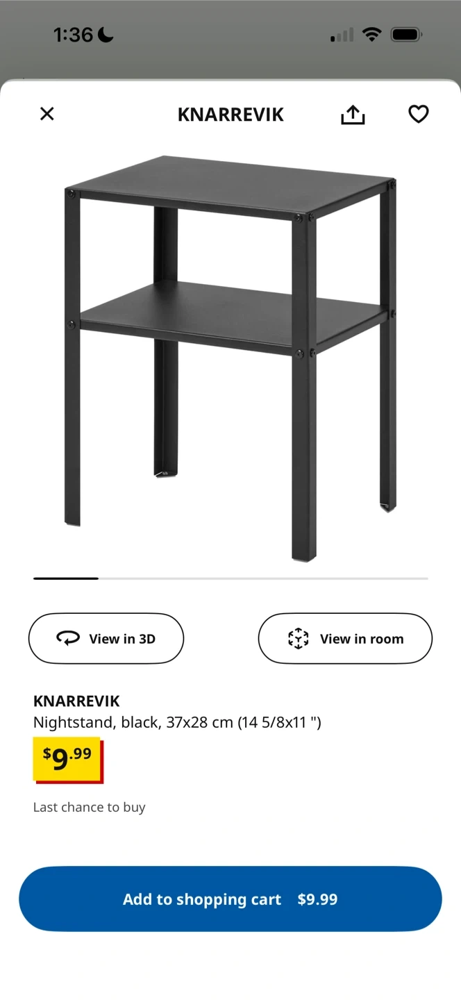 Selling a black IKEA KNARREVIK nightstand. It's in great shape and ready for a new home! The dimensions are 37x28 cm (14 5/8x11 "). Didnt use them properly Really good condition Feels like almost new Pick up and cash only