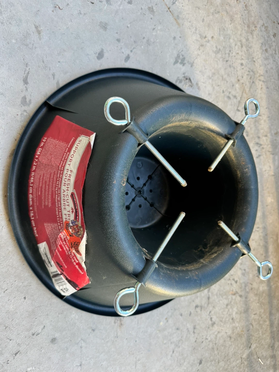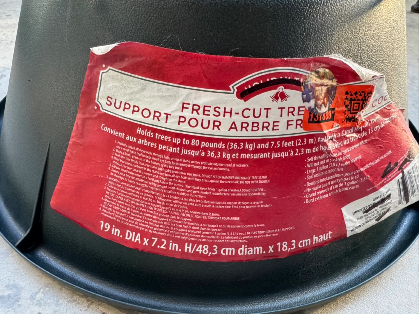 Selling a Holiday Fresh-Cut Tree Stand! It's designed to hold trees up to 80 pounds (36.3 kg) and up to 7.5 feet (2.3 m) tall. The stand itself measures 19 inches in diameter and 7.2 inches in height (48.3 cm diameter x 18.3 cm high). It also holds approximately 1 gallon (3.8 L) of water to keep your tree fresh