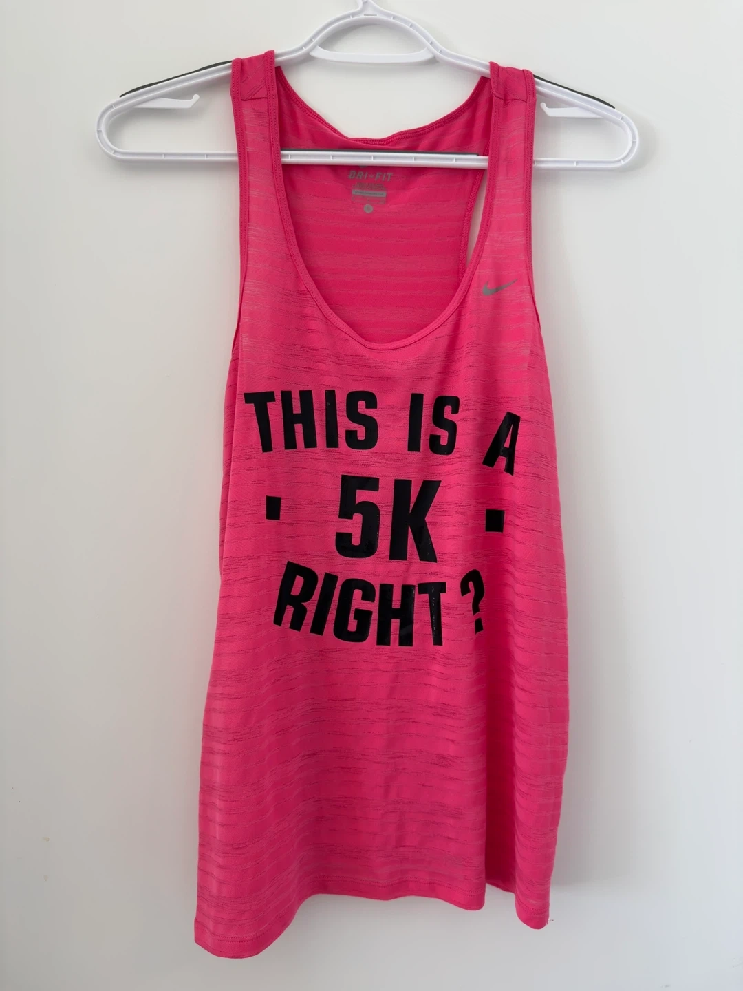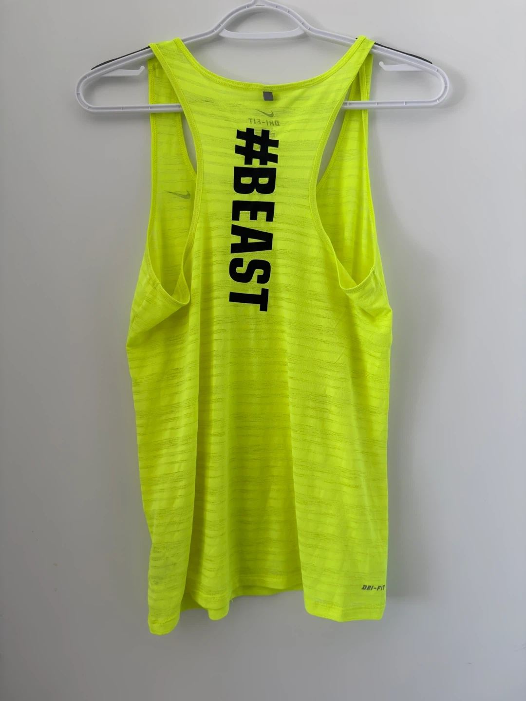 Selling a few Women’s Nike DRI-FIT tank tops in size s/m. They're great for workouts or casual wear. - One is purple with mesh detailing - One is neon yellow with '#BEAST' on the back - One is pink with 'THIS IS A 5K RIGHT?' on the front - One is salmon pink with ‘running sucks’ - One is black with white triangle details Each $8 or all 5 for $30