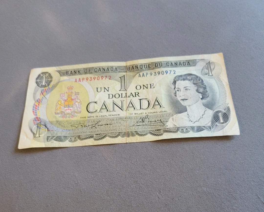 Selling a vintage 1973 Canadian one dollar bill featuring Queen Elizabeth II. It's in good condition. A nice piece of Canadian history!