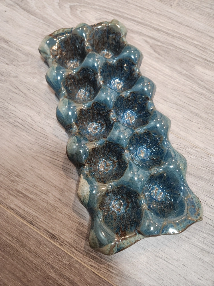 10 slot ceramic egg tray. Brand new, unused. Could be used for deviled eggs, hard boiled eggs, other small appetizers, or even decor. Pickup near Major Mackenzie & Bathurst