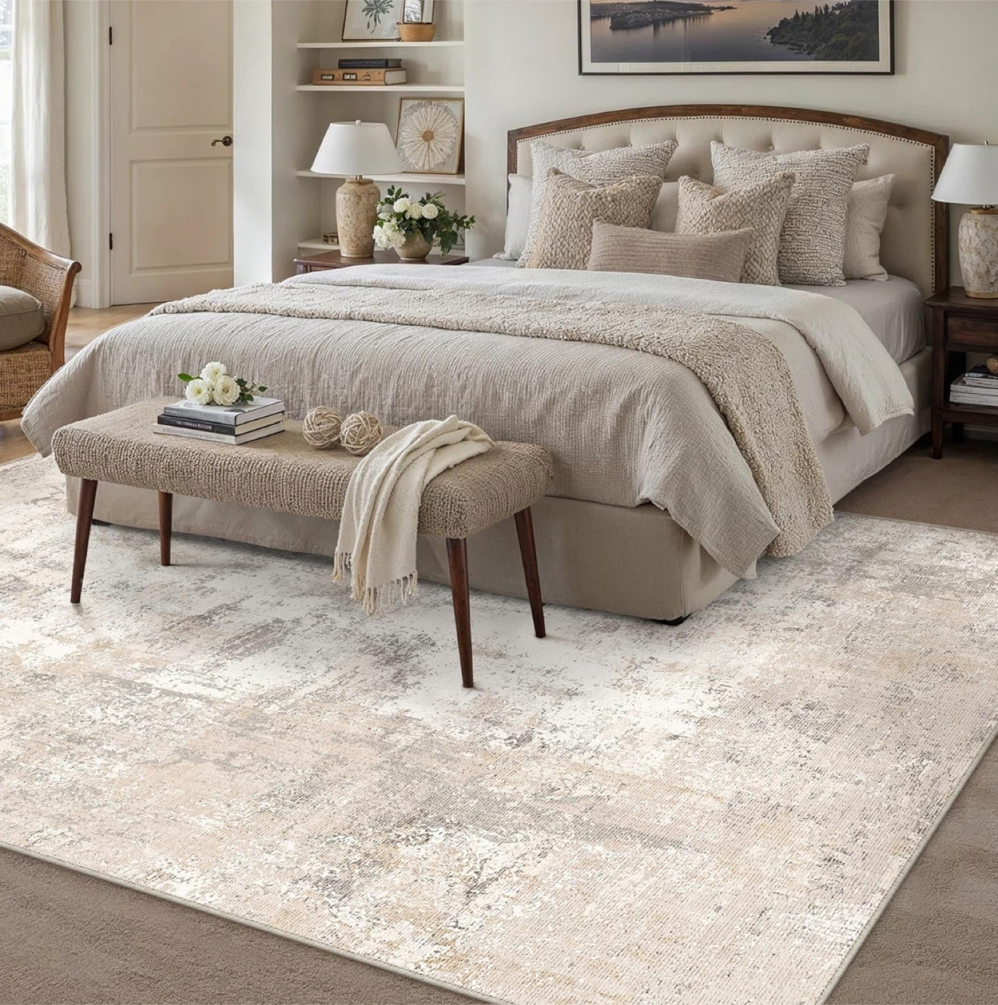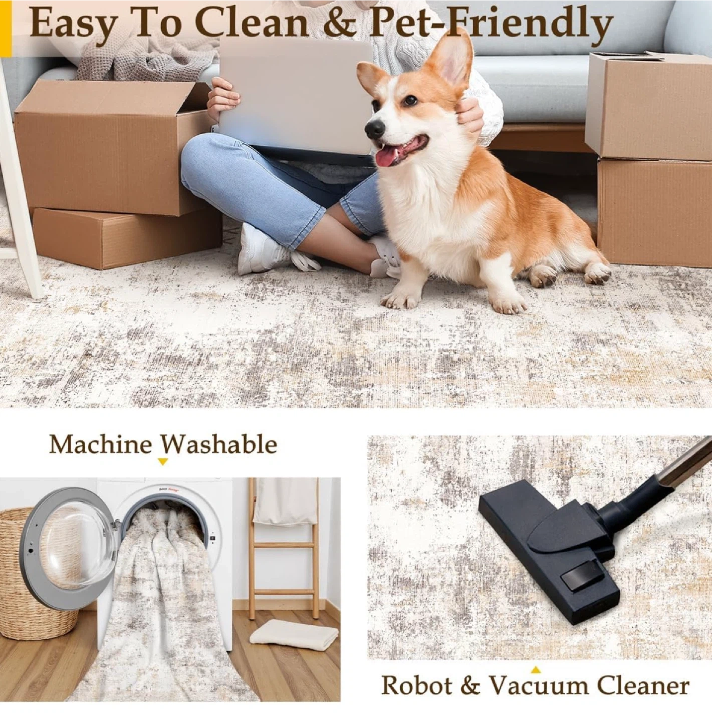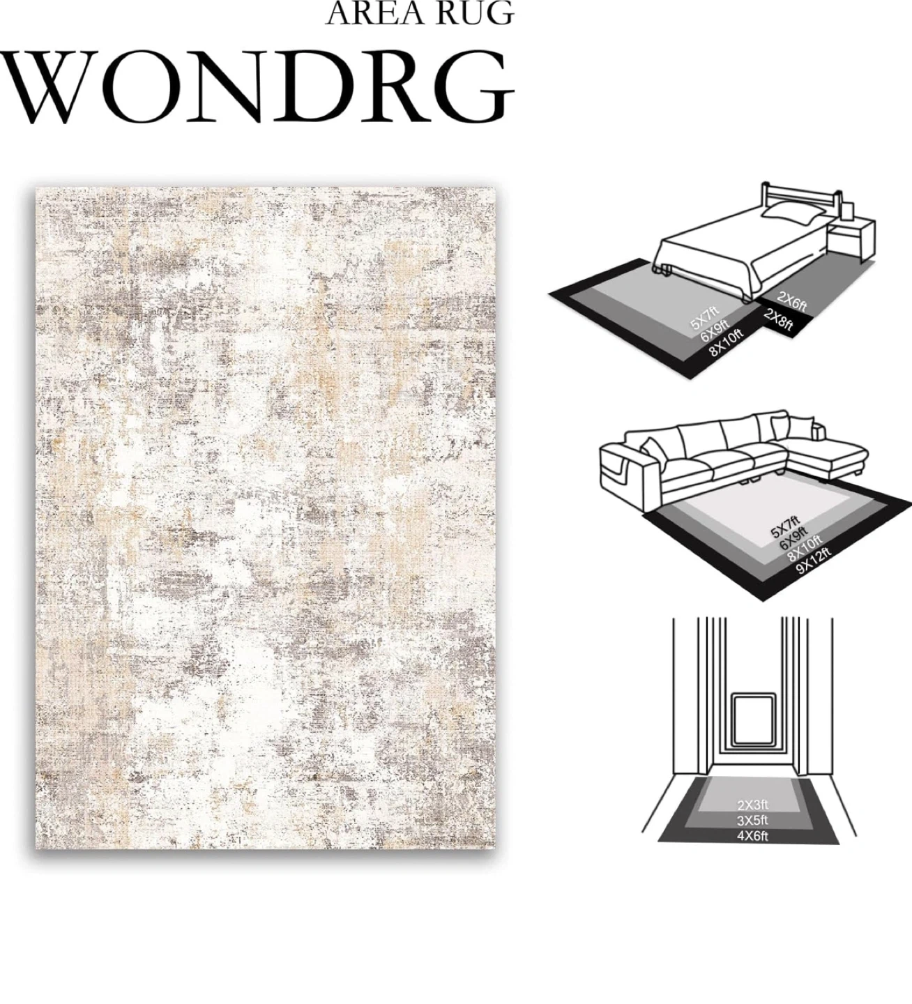 This Wondrg area rug is perfect for any room! It's easy to clean and pet-friendly, making it ideal for busy households. It's also machine washable for added convenience. The rug is designed to be compatible with robot and vacuum cleaners, ensuring easy maintenance. Available in various sizes to fit your space!