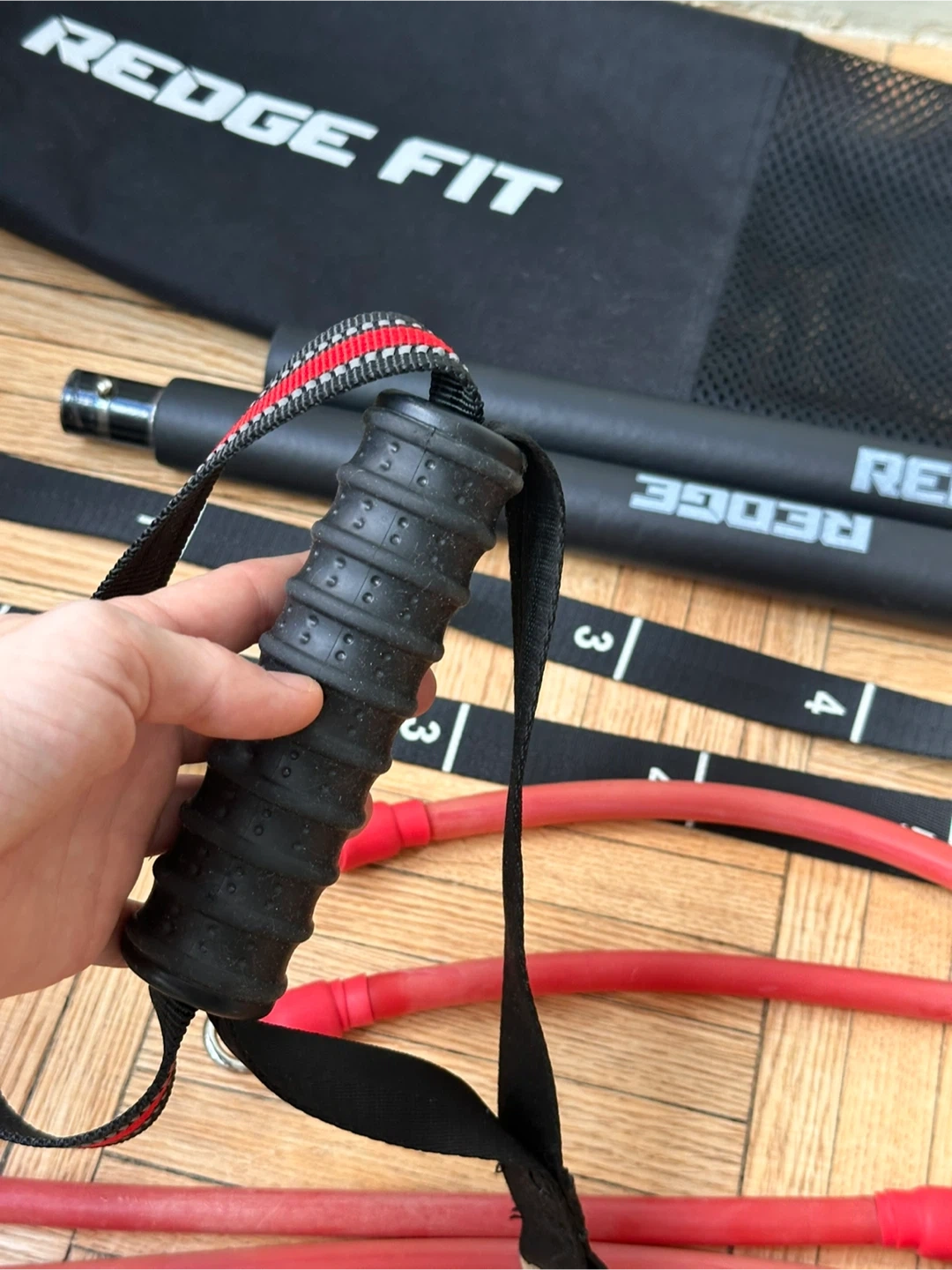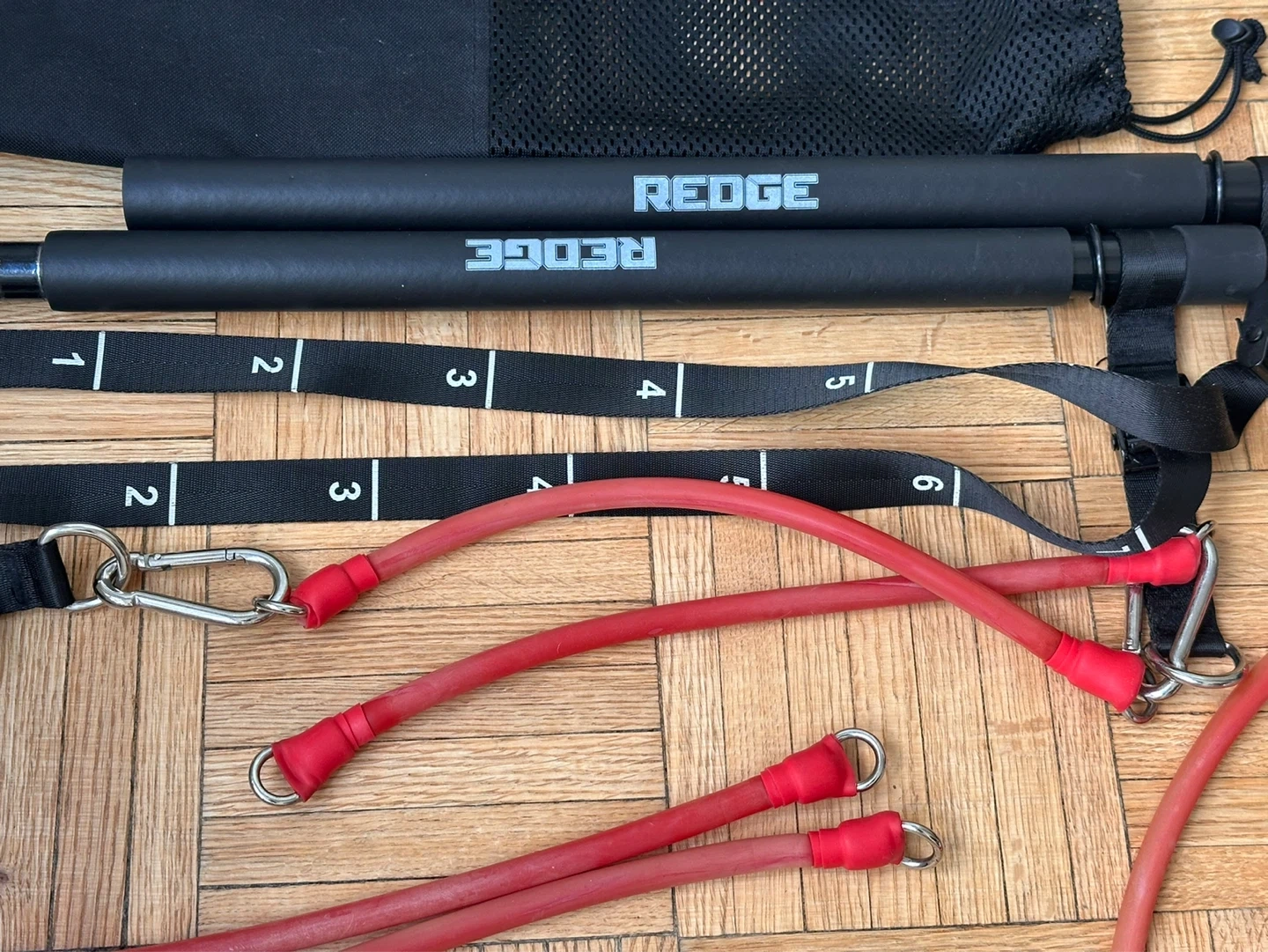 Get a full body workout anywhere with this Redge Fit portable home gym! It includes the resistance bar, resistance bands, handles, and door anchor, all in a convenient carrying bag. Perfect for travel or small spaces! In excellent conditions. Retail $100 plus taxes. Pick up near Yonge and Bloor