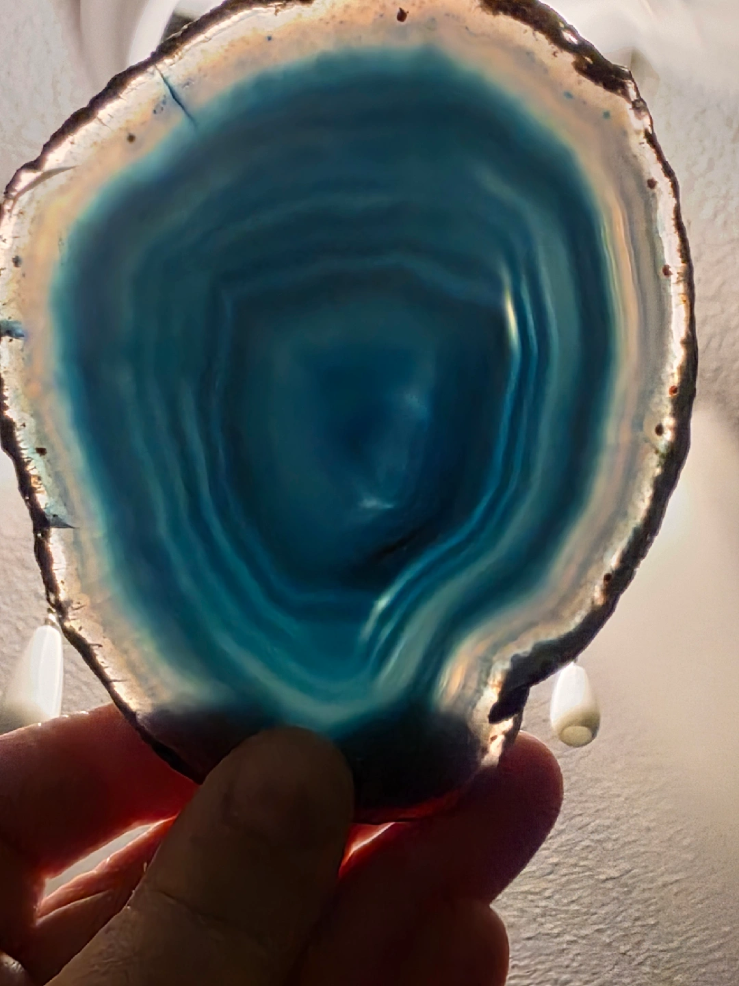 Here is a beautiful blue agate slice. It would make a lovely decorative piece. comes with a stand. 4.5 inches. pickup near High Park Station.