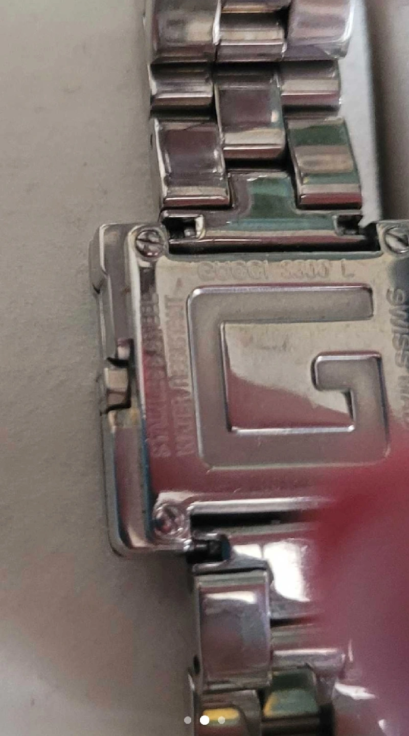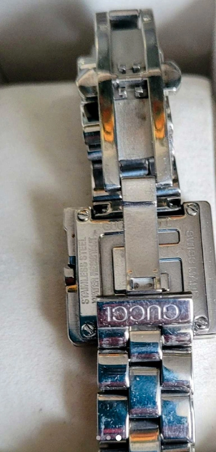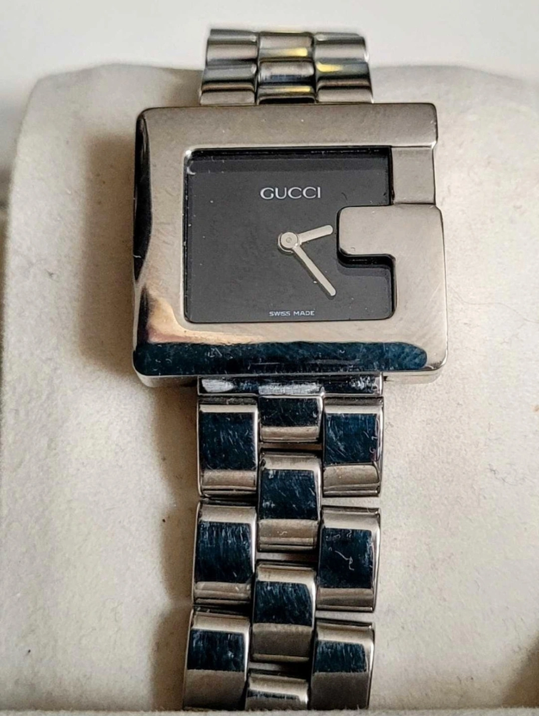 Check out this stylish used Gucci 3300 L ladies' watch with a sleek stainless steel band and elegant black dial! The watch is in good condition, telling time like a champ. It's a classic timepiece with a square face that adds a touch of sophistication to any outfit. Ladies, you know you want to treat yourself. If the ad is up, it's still available!