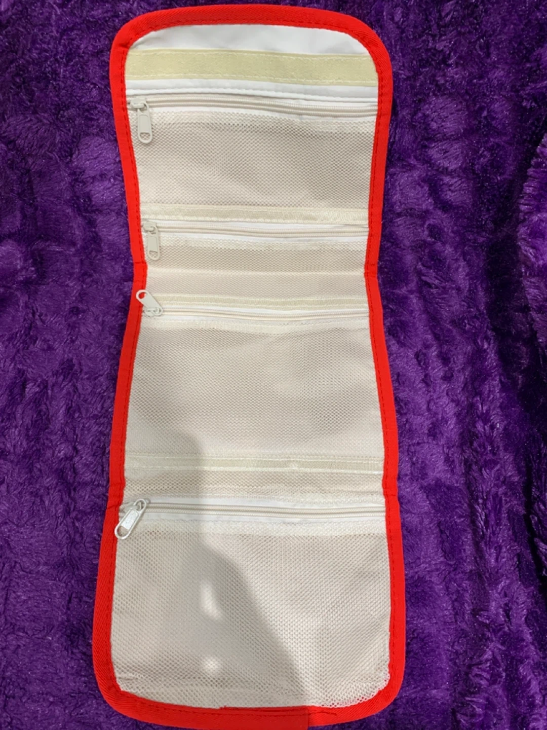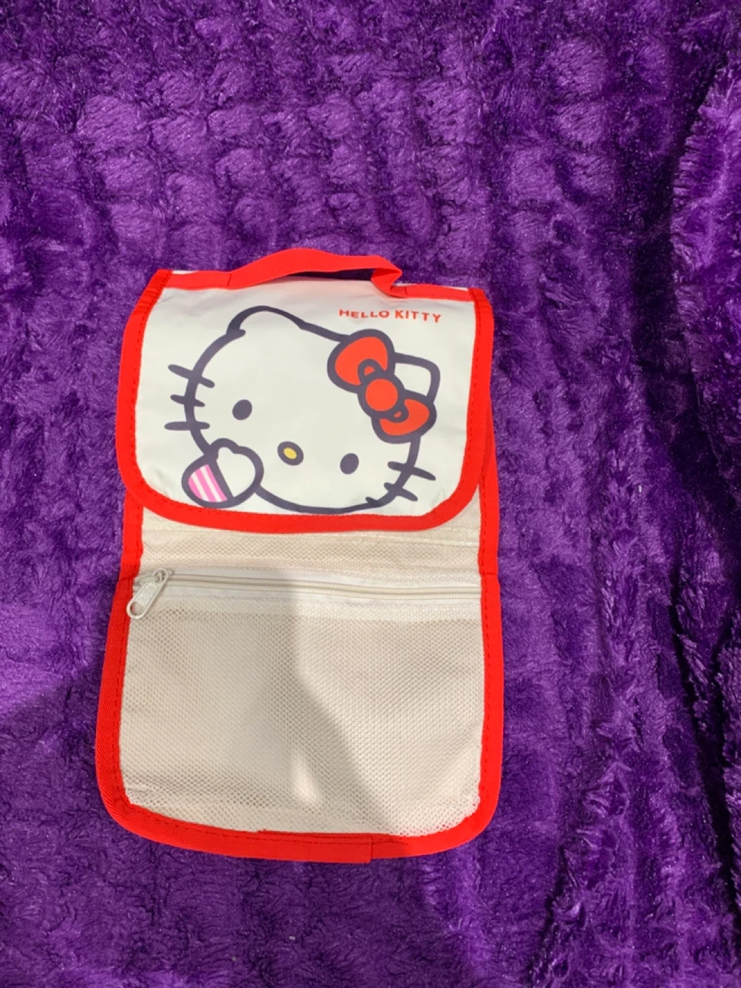Keep your toiletries organized with this adorable Hello Kitty hanging bag! It features a convenient hook for easy hanging and multiple zippered compartments to keep everything in place