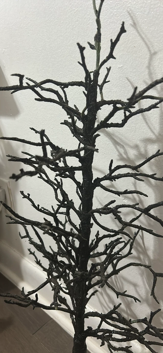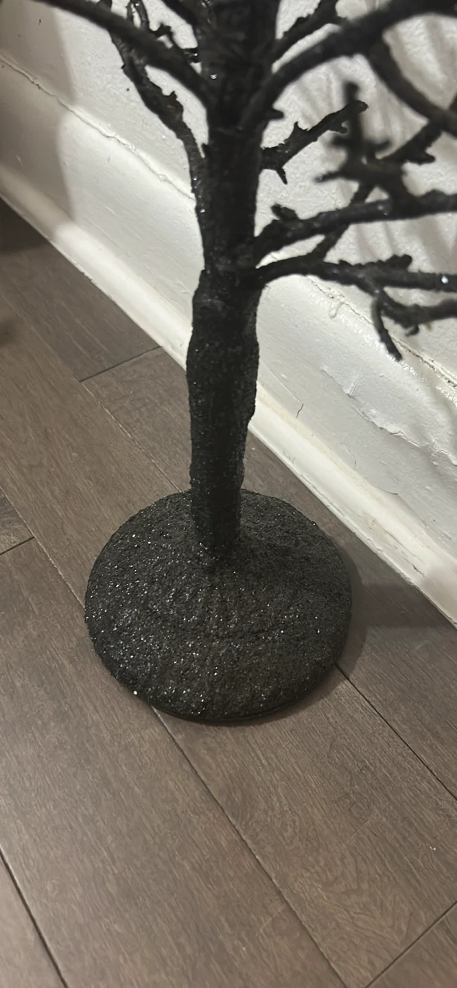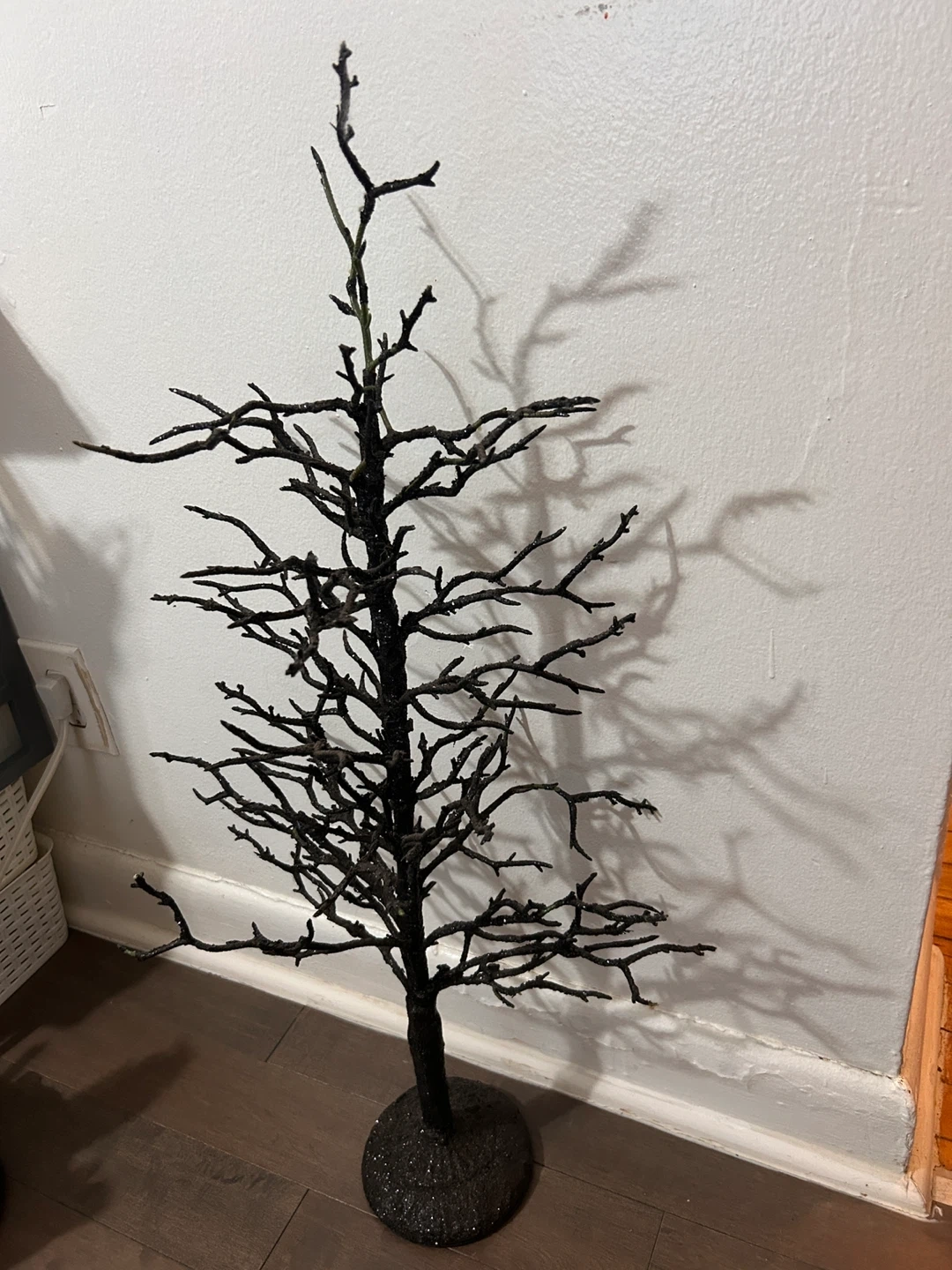 Selling a decorative black tree! It would be perfect for Halloween or any time of year if you're into a spooky vibe. It's in great condition and ready to find a new home