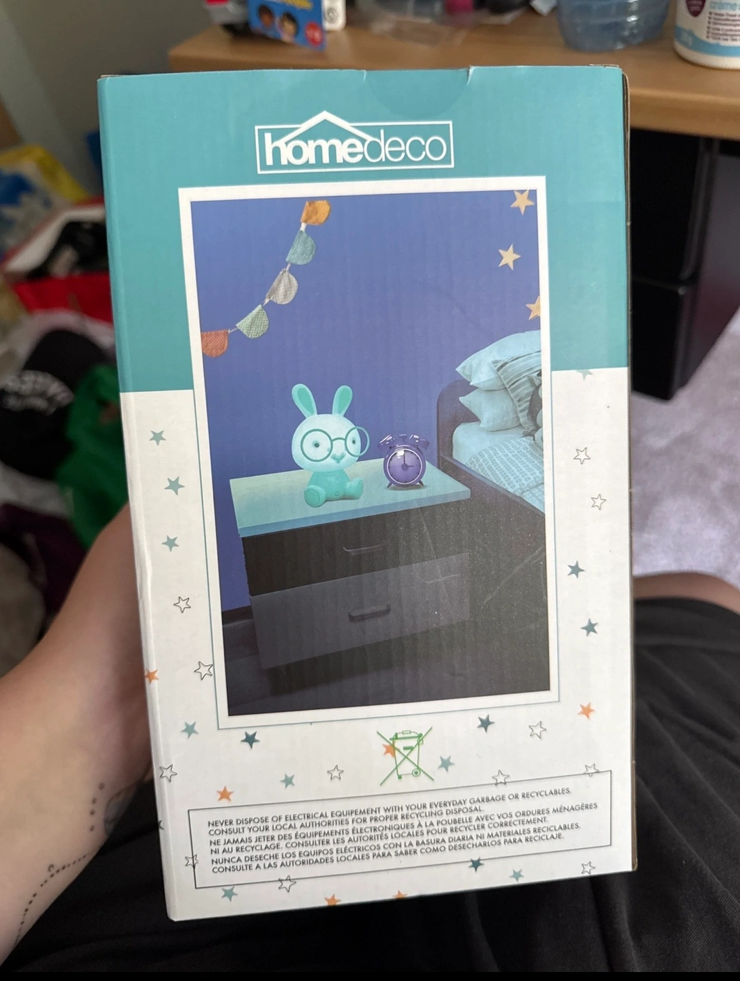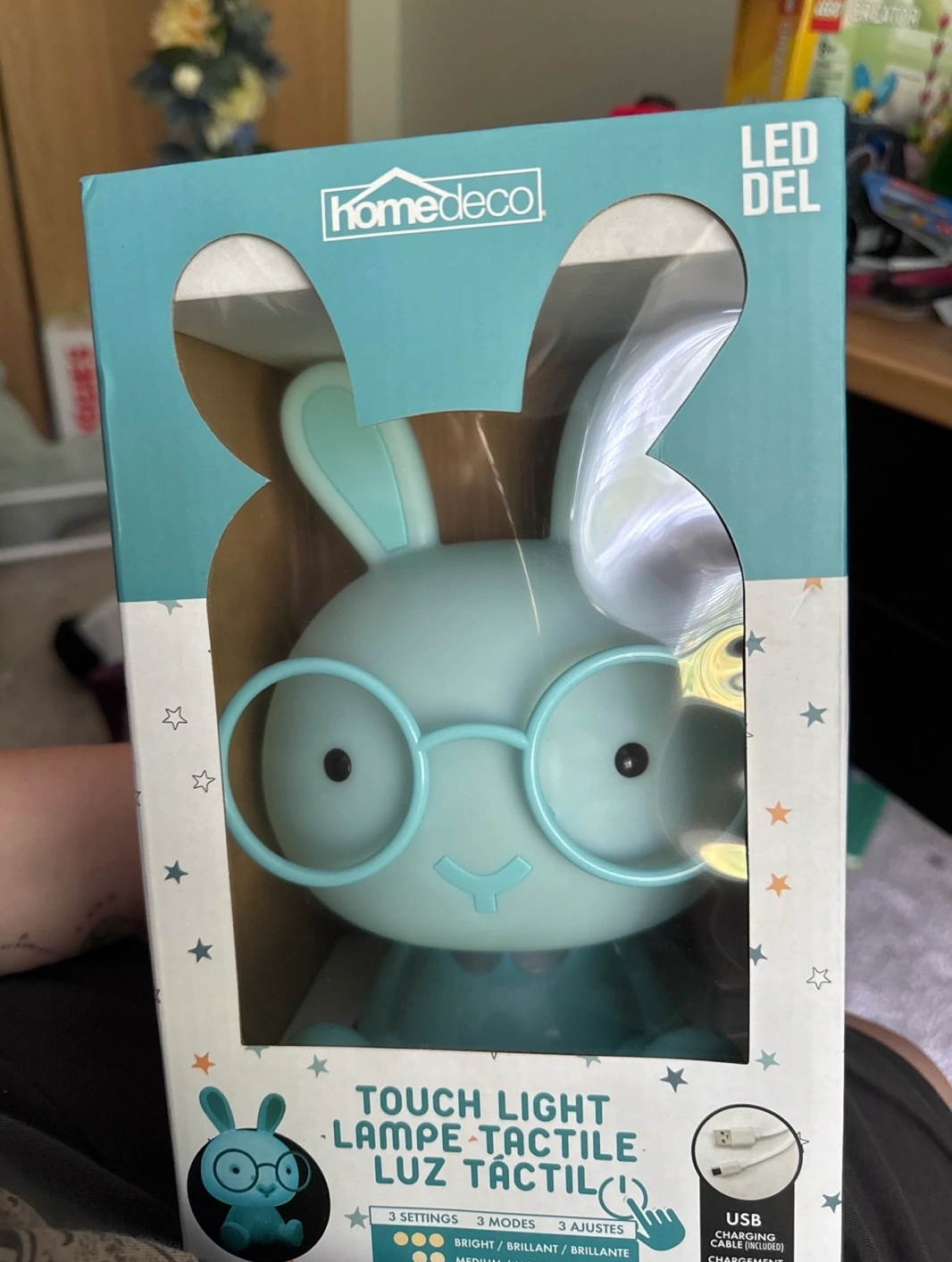 This adorable Home Deco bunny touch light is perfect for a kid's room! It has 3 settings and is touch-activated. It also comes with a USB charging cable New