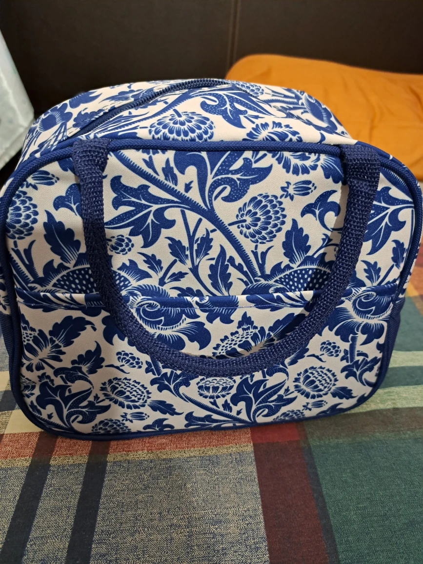 cute and very clean lunch bag...realized it doesn't suit me bought from Kitchen Stuff Plus few months ago and now sitting in my closet length 10" height 8" width 6" has one side pocket pick up only