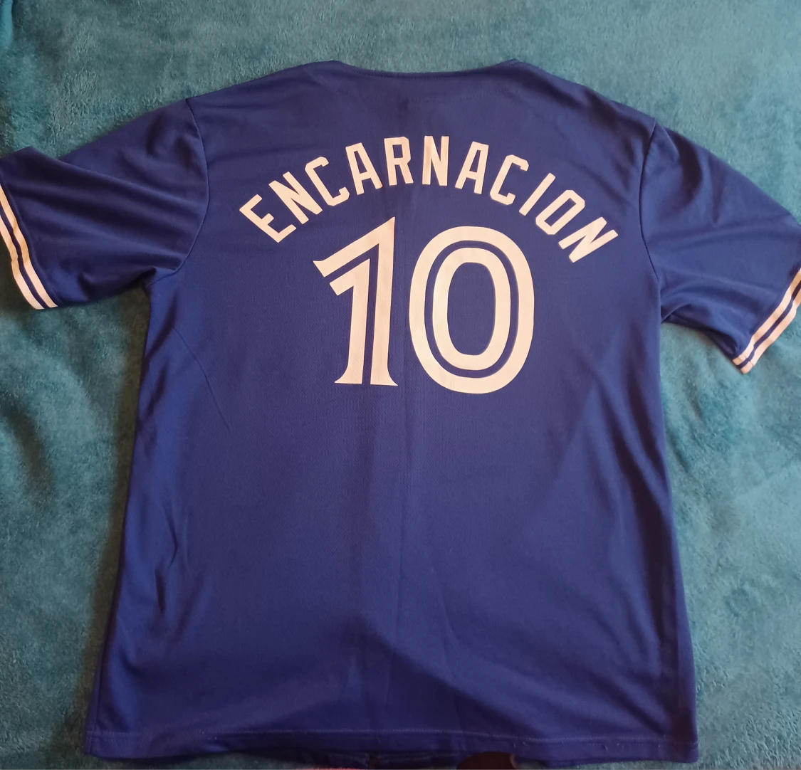 Blue Jay's Merch XL jersey, a few pills on front of shirt, barely noticeable. ( Pic of slight flaw) Chat if interested. π