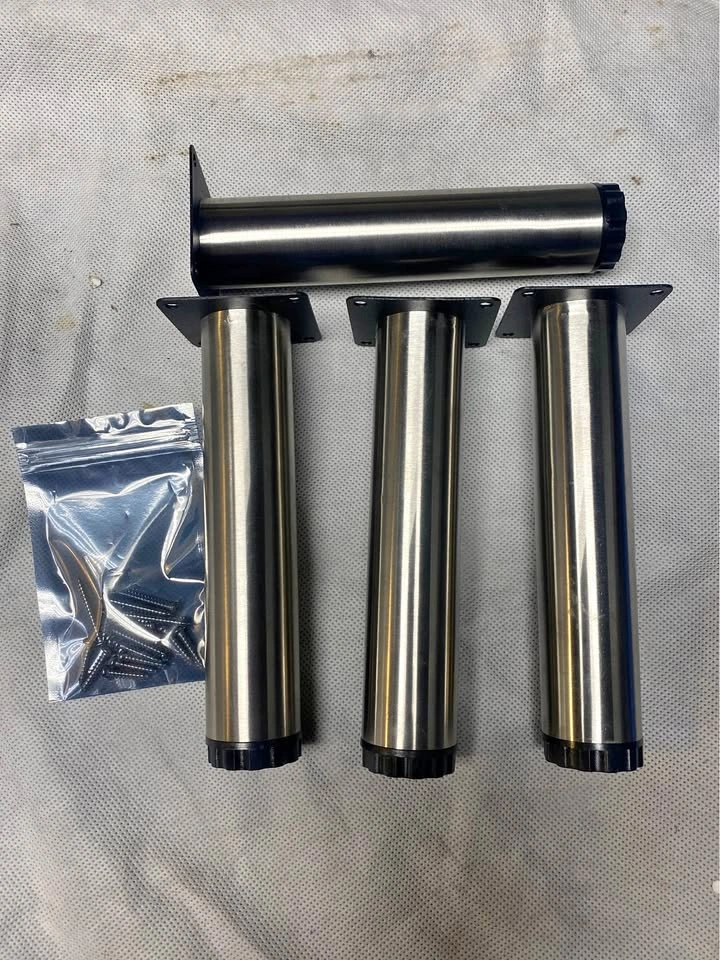 4 Adjustable Furniture Legs (7"/180mm height, 0-19mm adjustable range) Durable: Stainless steel ABS base (40kg/88lbs per leg, 160kg/352lbs total). Versatile: Stabilizes furniture on uneven surfaces; ideal for desks, cabinets, shelves, etc. Sleek Design: Modern silver finish upgrades any furniture.