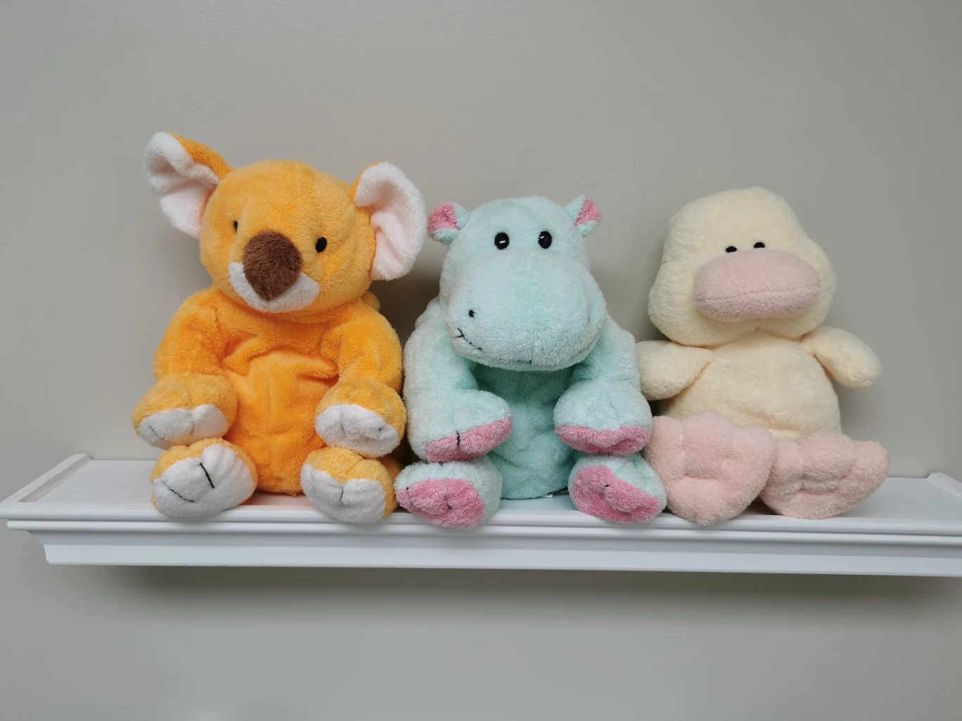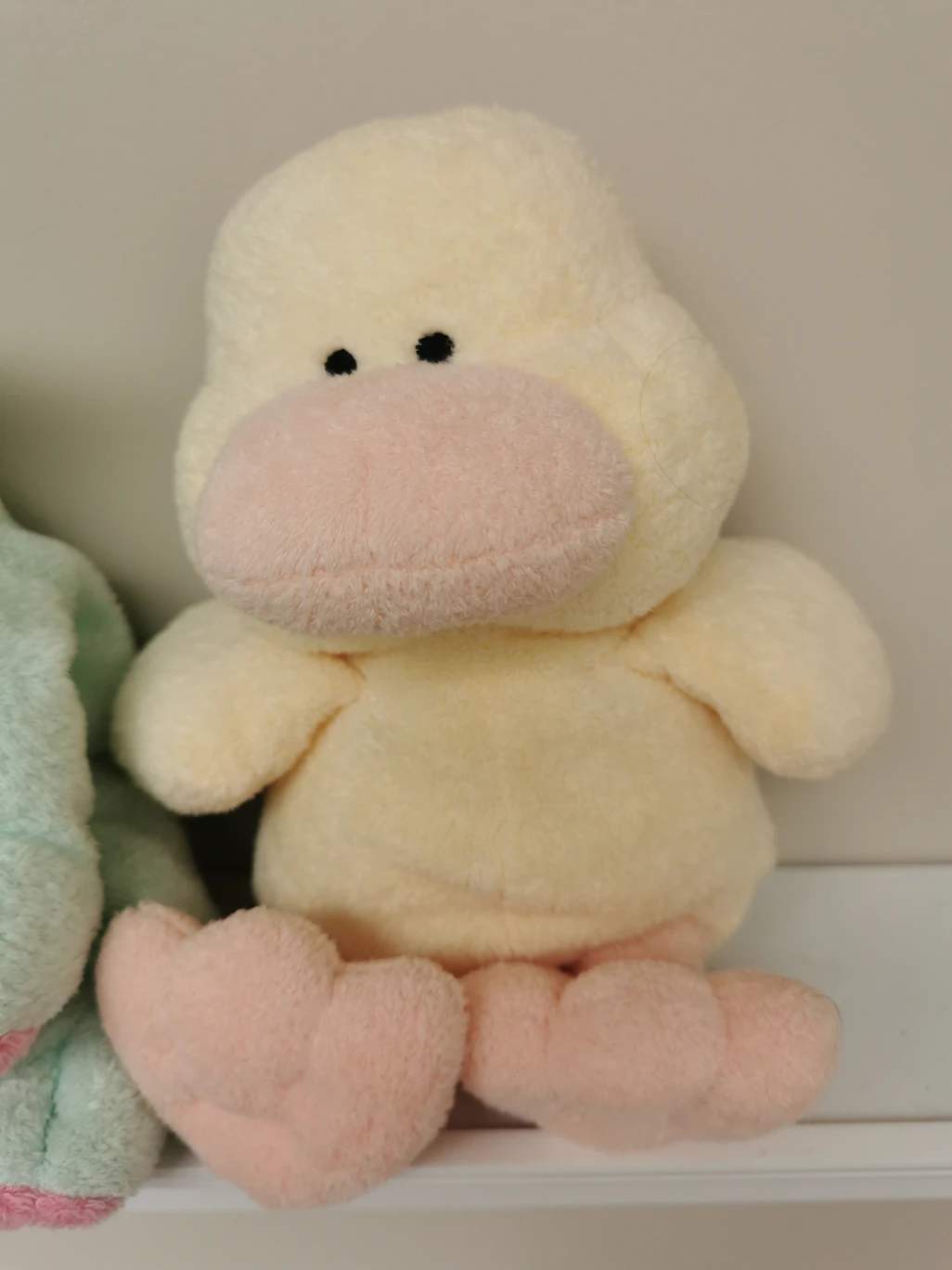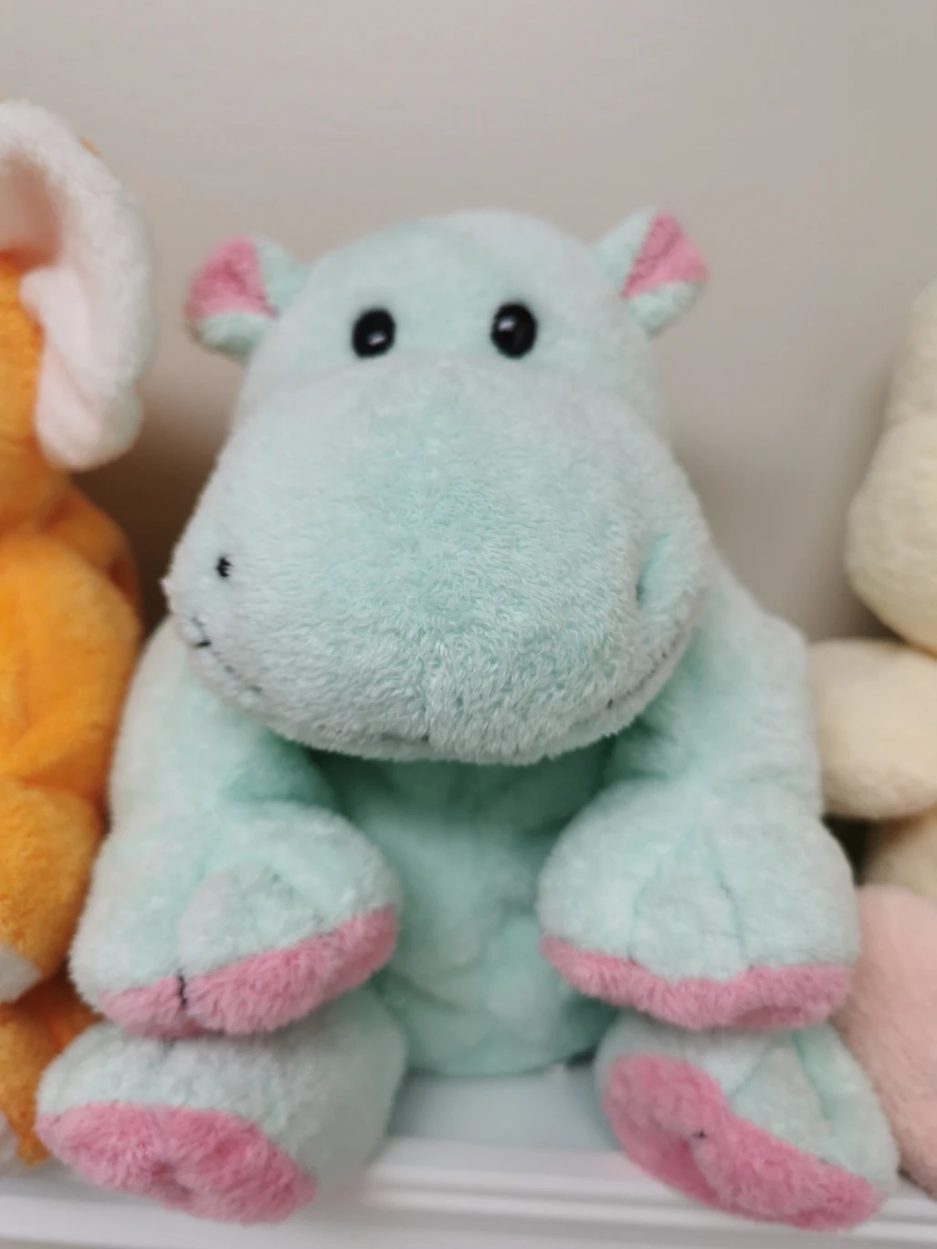 Green hippo, yellow duck, and orange kawala. All in good condition. So soft and cute! 🥹 Washable.