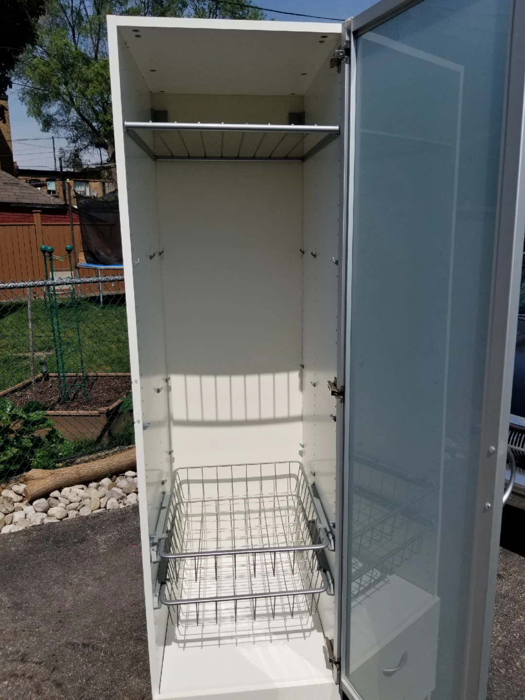 Custom IKEA wardrobe / cabinet with frosted glass door. Measurements " height x 24" depth x 19.5" width. in great shape overall. Original retail was around $700 after tax. pick up location Dufferin & Eglinton area Bansley ave..