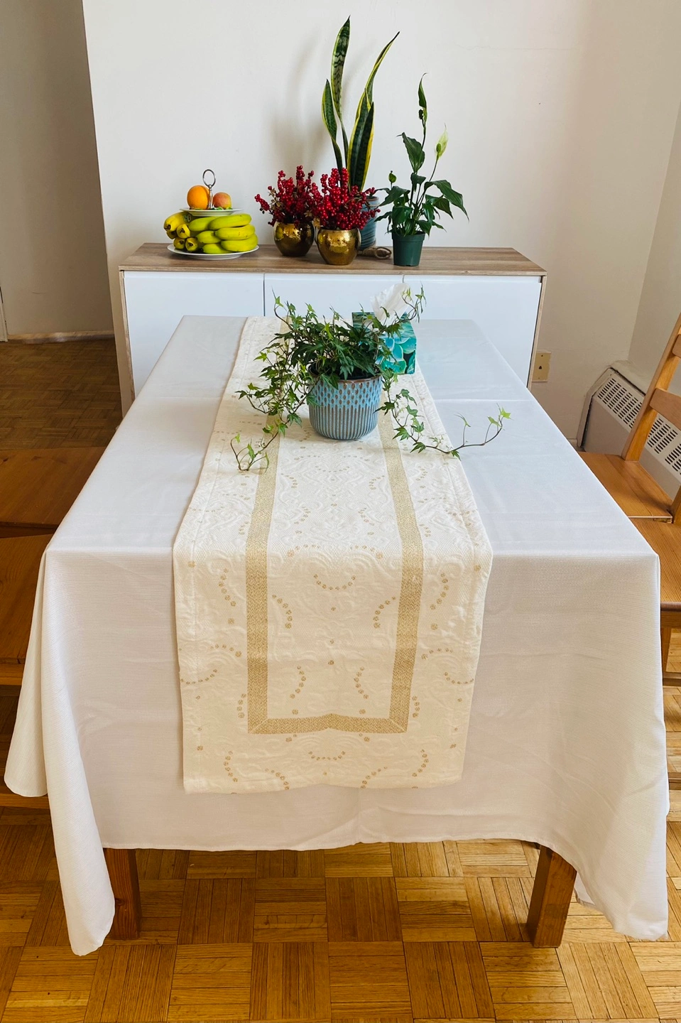 Table cloth and runner duo, runner made in Portugal & only used once!!🥰 Please check my other listings for bundle discount:), have a wonderful day!🥰💝💕