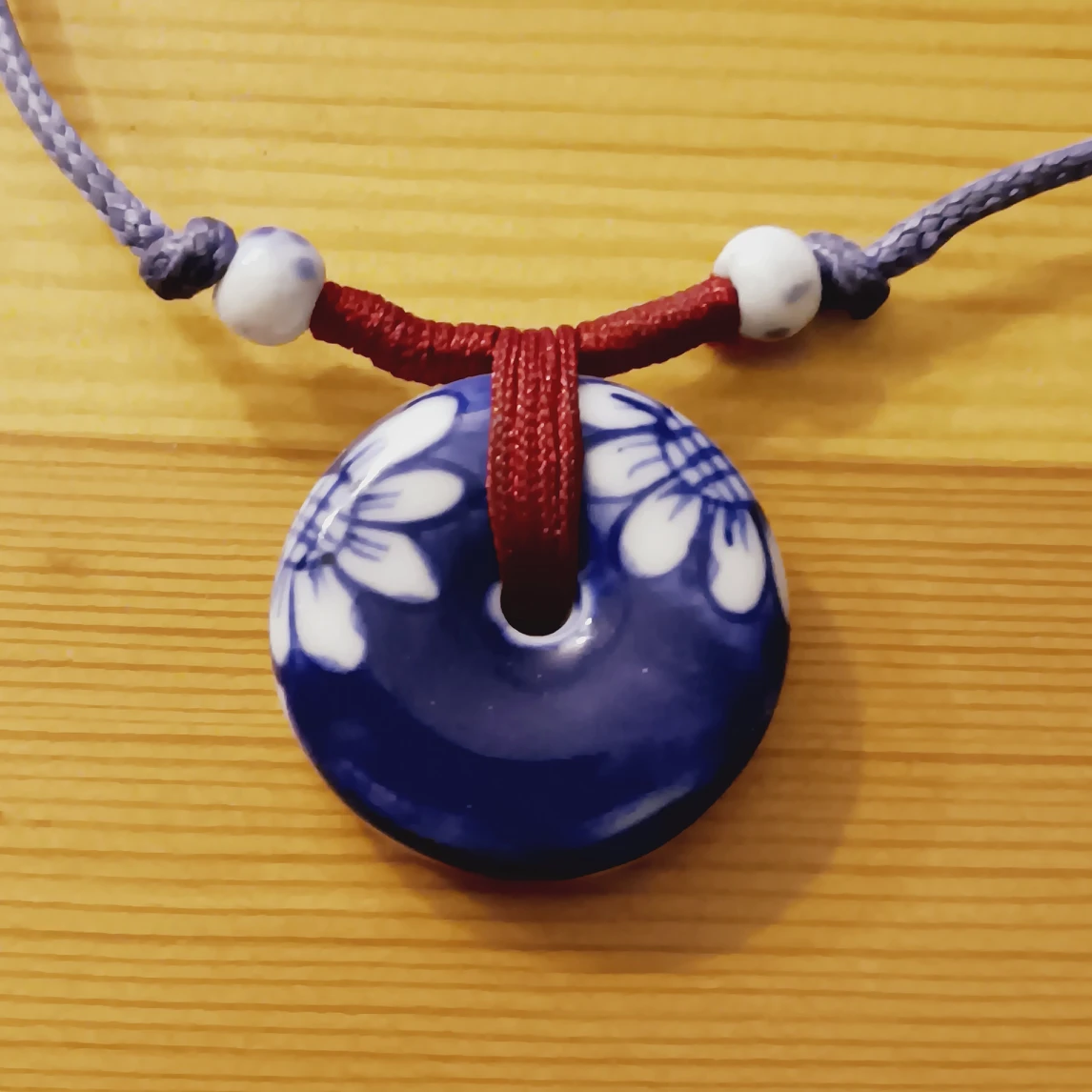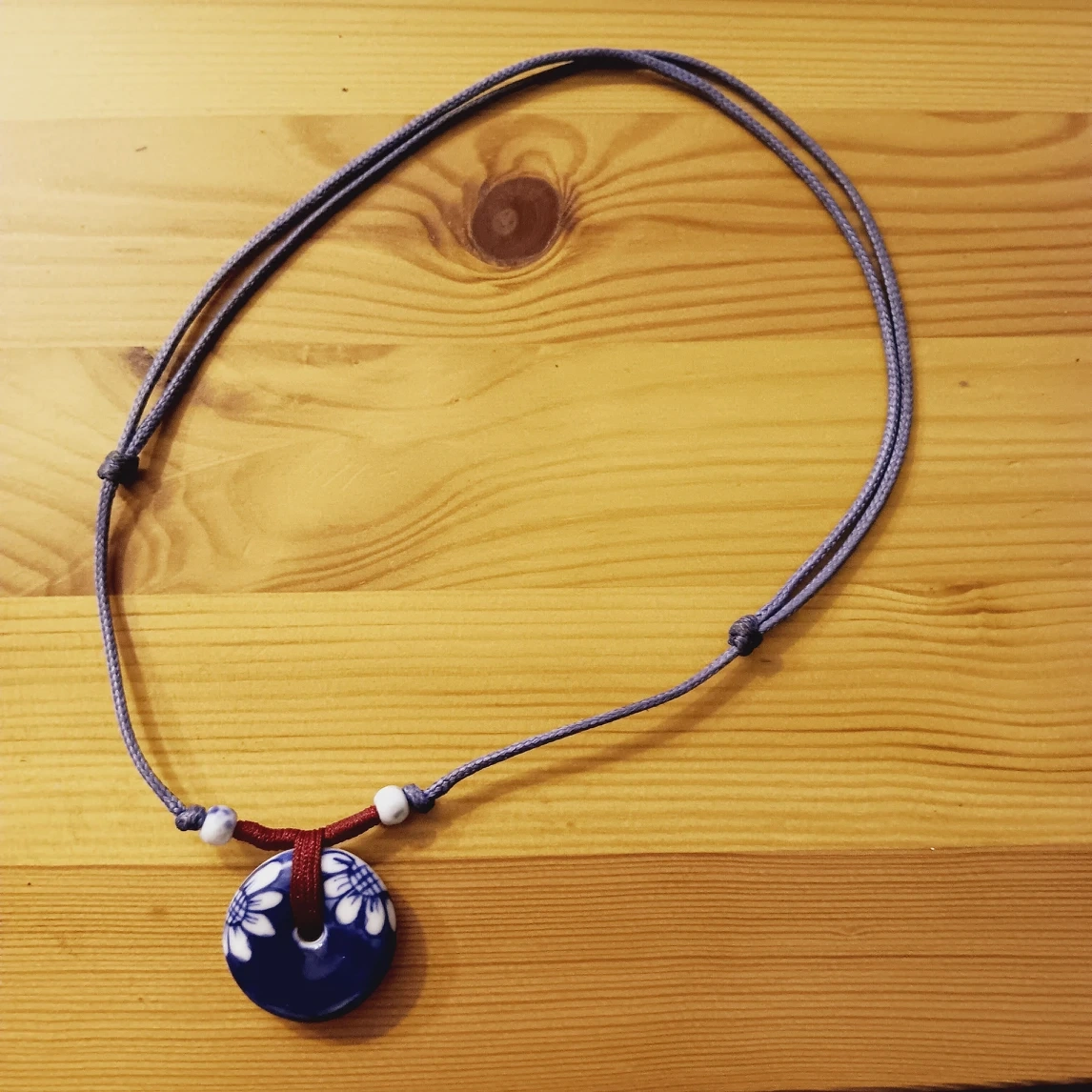 Painted porcelain necklace/choker from China, adjustable using the knots in the string Pickup in front of Manulife Centre Indigo (55 Bloor St.) Bay street entrance I have other clothes for sale in my profile, feel free to take a look!