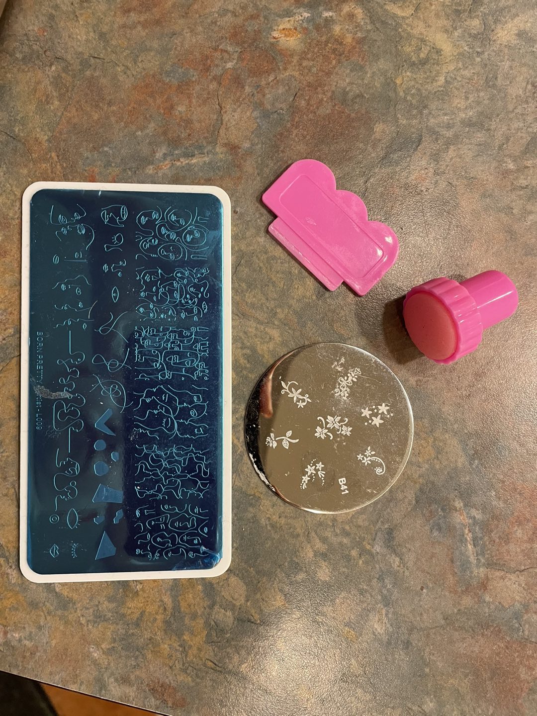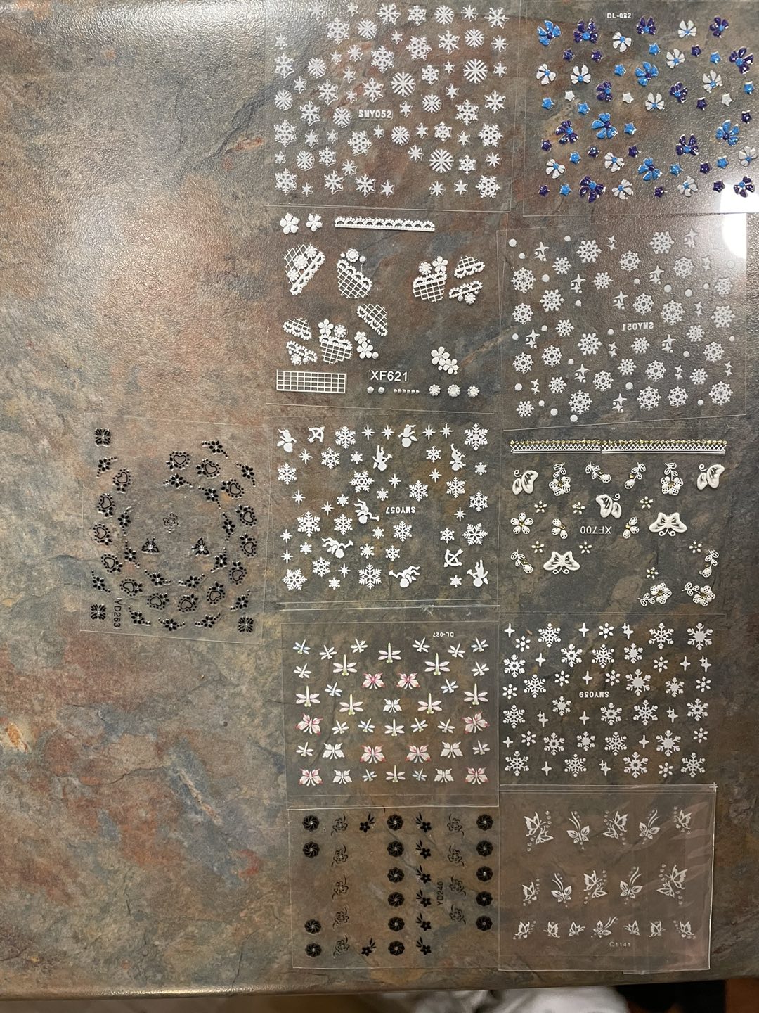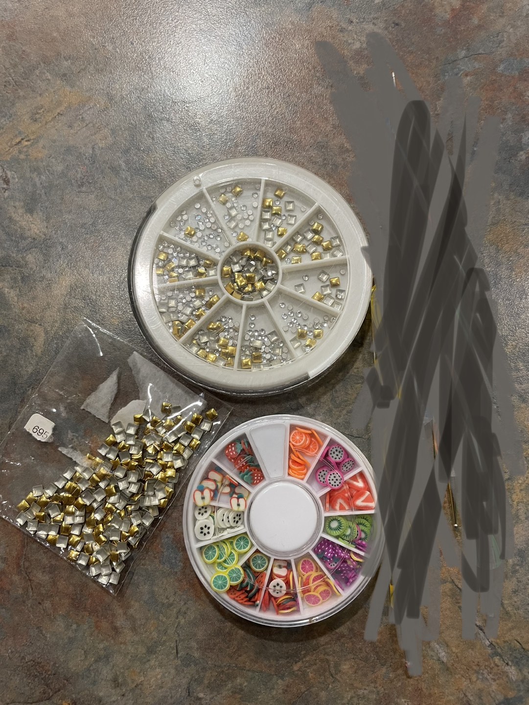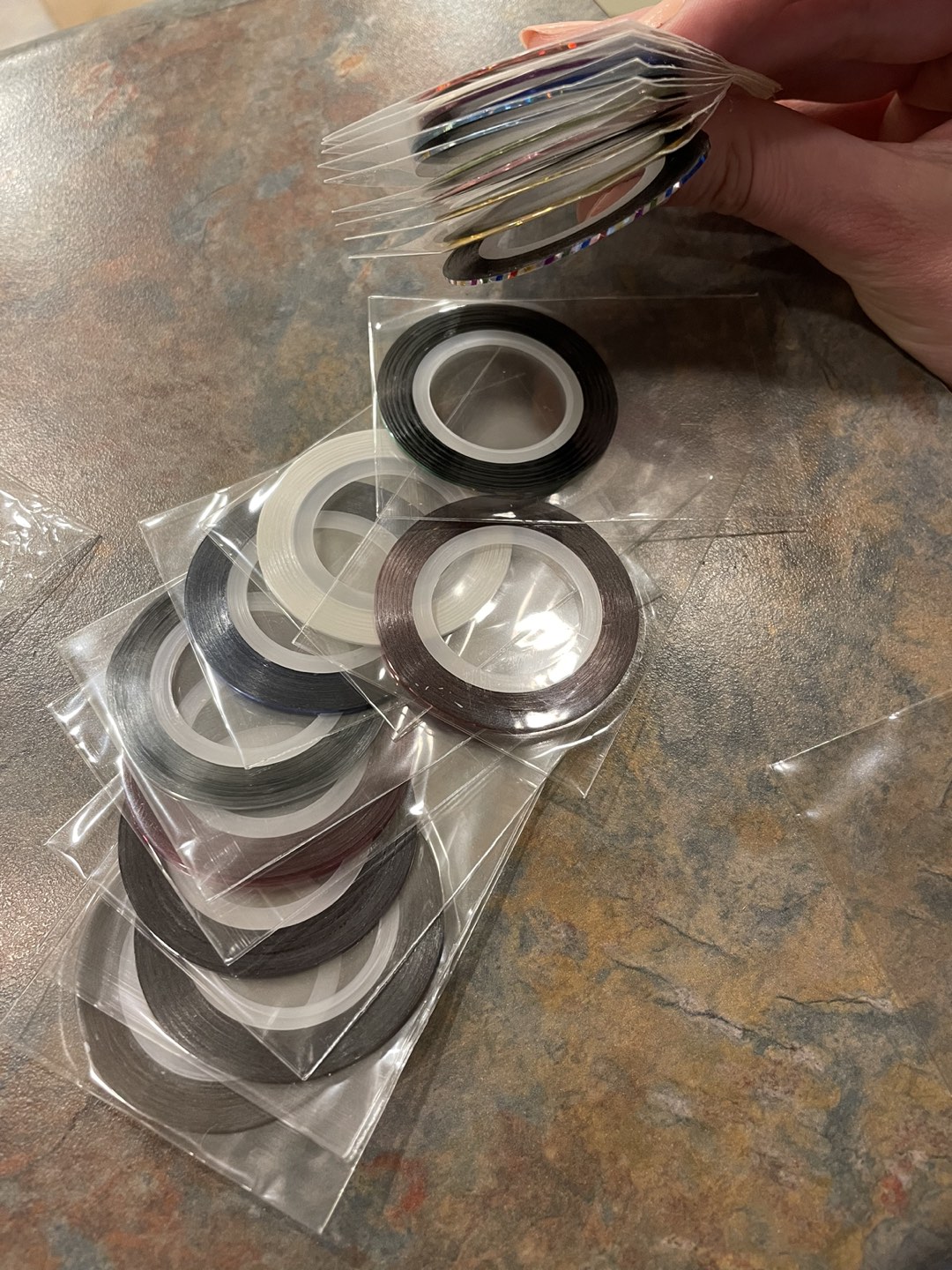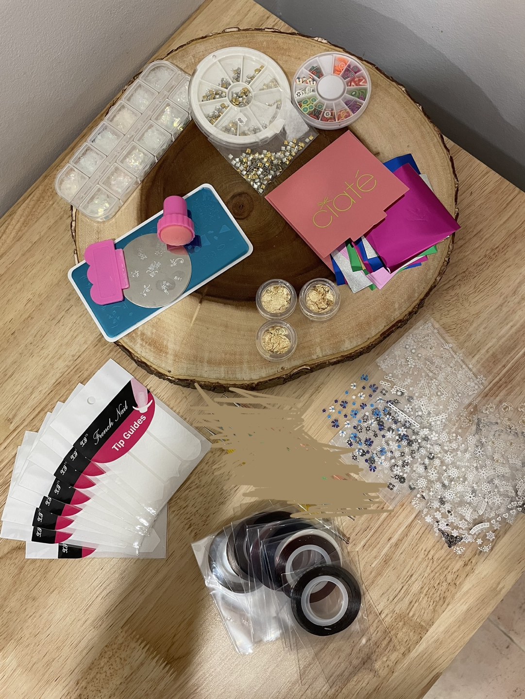 Tons of nail art supplies being sold as one lot. Contains: - 8 packs of nail tip guides, each package contains 3 styles - 4 double sided dotting tools of various sizes - 20 rolls of stripes in every colour - 22 sheets of press on stickers - stamping kit with 2 metal design templates - 23 sheets of nail foils - 3 containers gold foil - gold embellishments - fruity embellishments - shiny/snowy embellishments Pickup near Yonge and st Clair