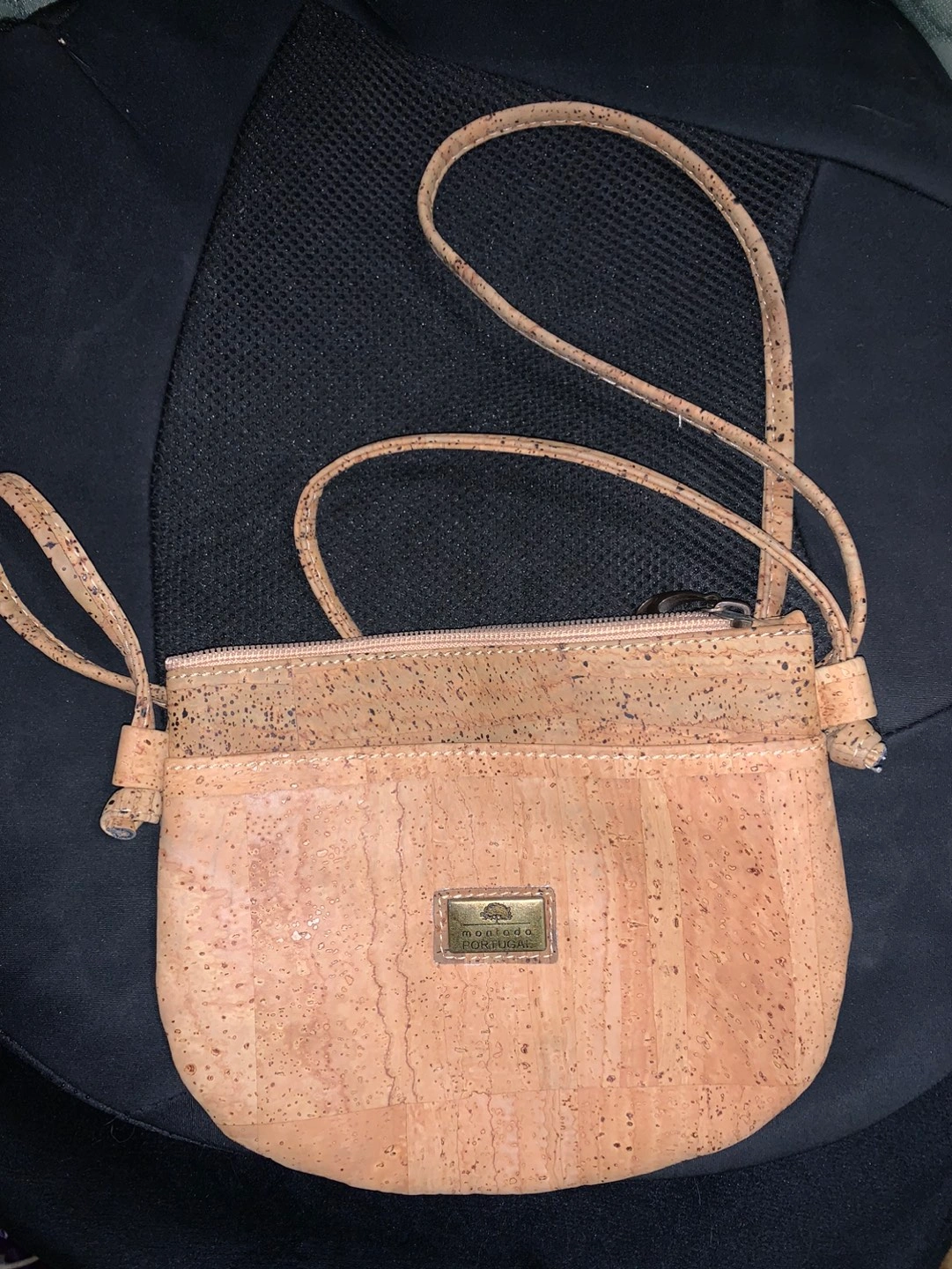 Made in Portugal. Cork looking purse. I’m not sire if it’s actual cork, it’s very smooth and soft and bendable. Good to carry phone, keys and small items. Has pockerts you can see on the pictures. Budle up a few things to get a discount! 🎁