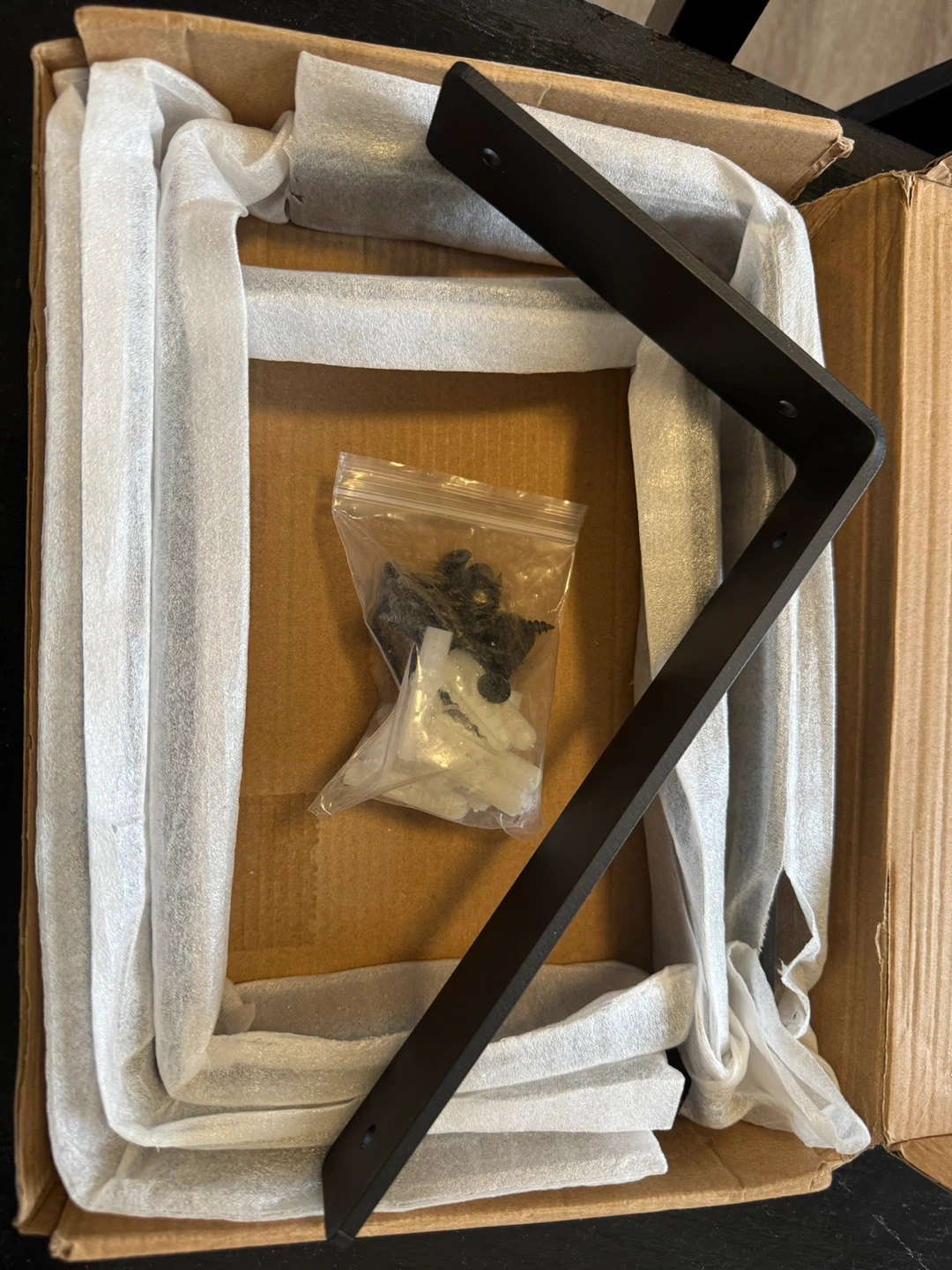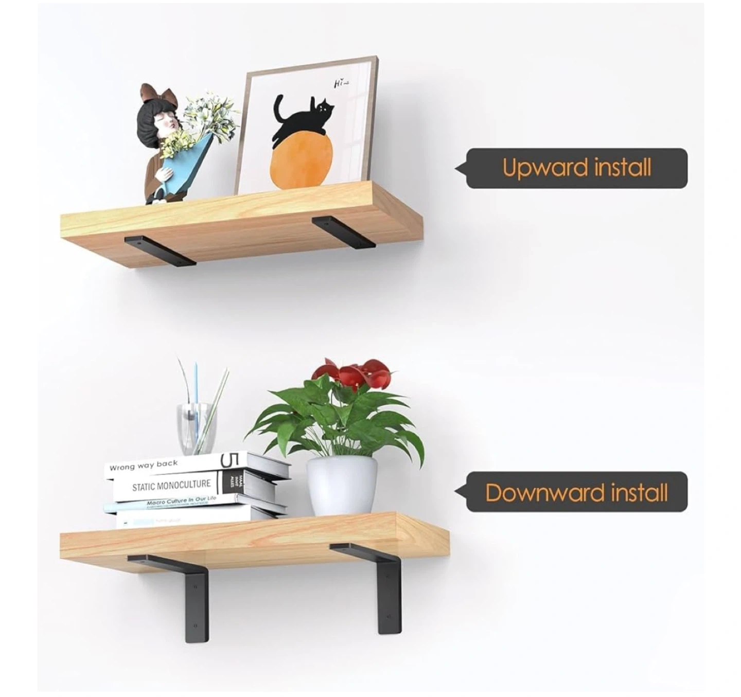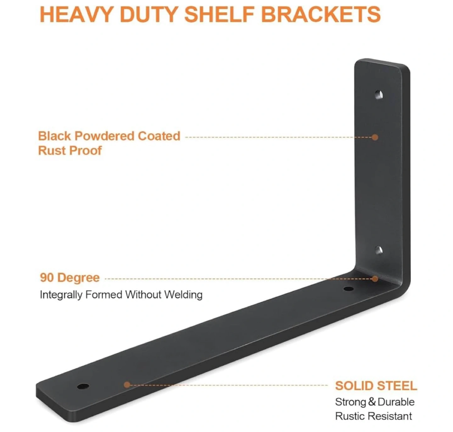 *CASH Only* New These heavy-duty shelf brackets are made from solid steel and are built to last! They're black powder coated for a rust-proof finish, so they'll look great for years to come. - Dimensions: 9.5in x 5.5in - Thickness: 5mm - Can be installed upward or downward [Check Out My Other Listings]