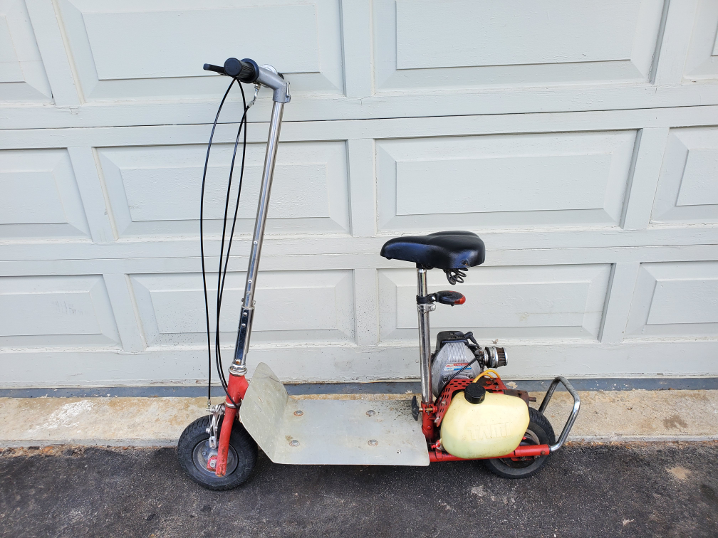 33cc gas scooter. Starts and runs perfectly. Only issue needs new exhaust. These have become pretty popular and easy to fix up with many aftermarket performance parts.. Located in the Dufferin & Eglinton area..