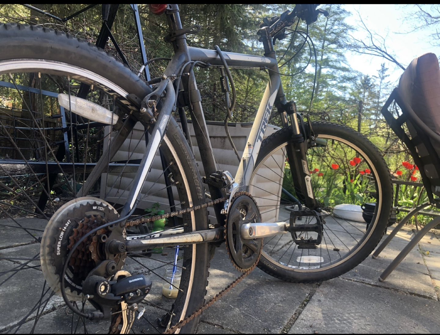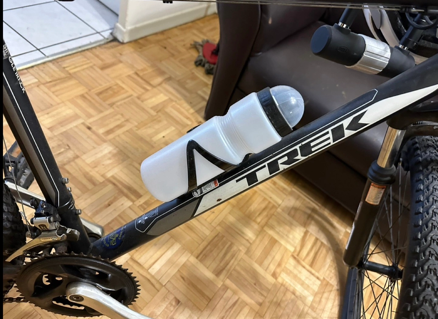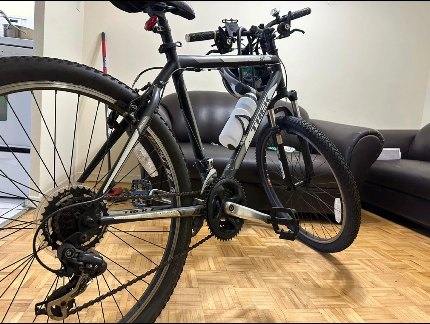 Trek 820 Mountain Bike 21 speed, 19.5” ot 49.5 cm tall, fully equipped with: - Phone Holder - U Lock (strongest there is) - Bell/ringer - Bottle and bottle holder - Dual Drum Pump Brake shoes have been replaced and has been barely used since. Frame: Trek Custom Steel, rack mounts, 135x5 mm QR Fork: SR Suntour M-3030, coil spring, 100x5 mm QR, 75 mm travel Shifters: Shimano Tourney EF41, 7 speed Cassette: Shimano TZ500, 14-28, 7 speed Priced at $400 including everything mentioned Pick up at Yonge & Lawrence Station