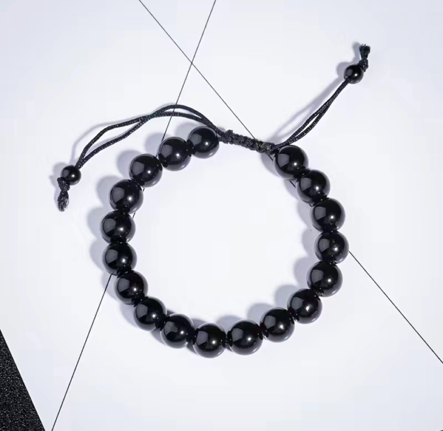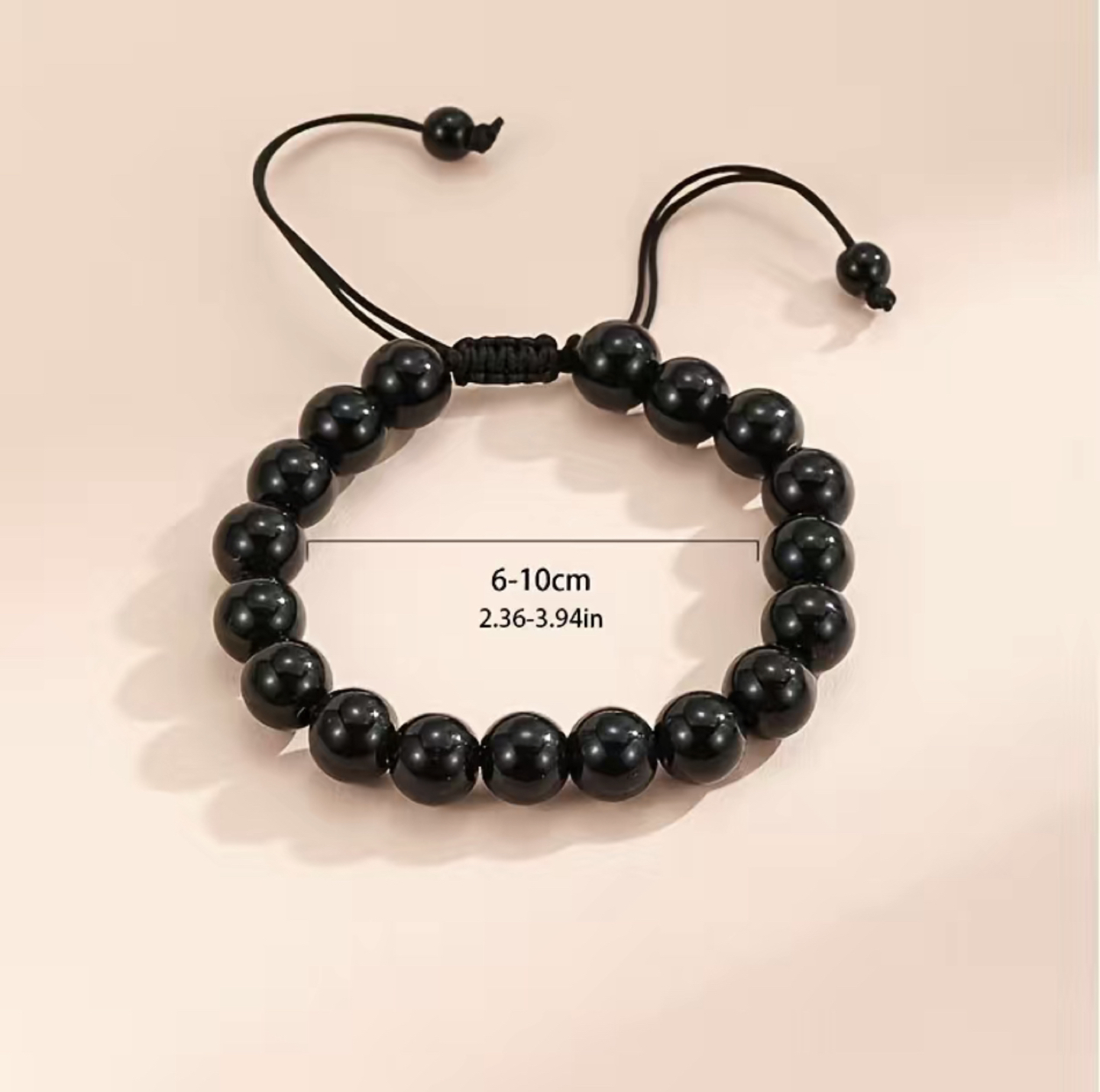 1pc Obsidian Bracelet Hand Woven Bead Bracelet Adjustable Length Womens/ Mens