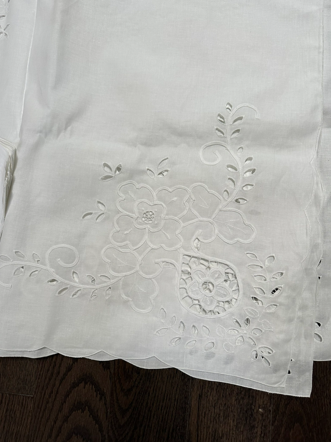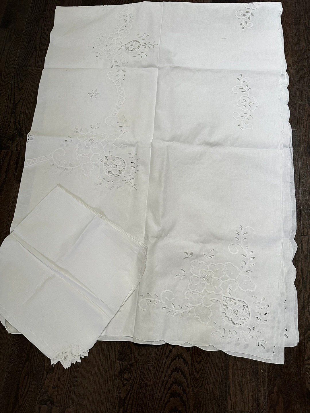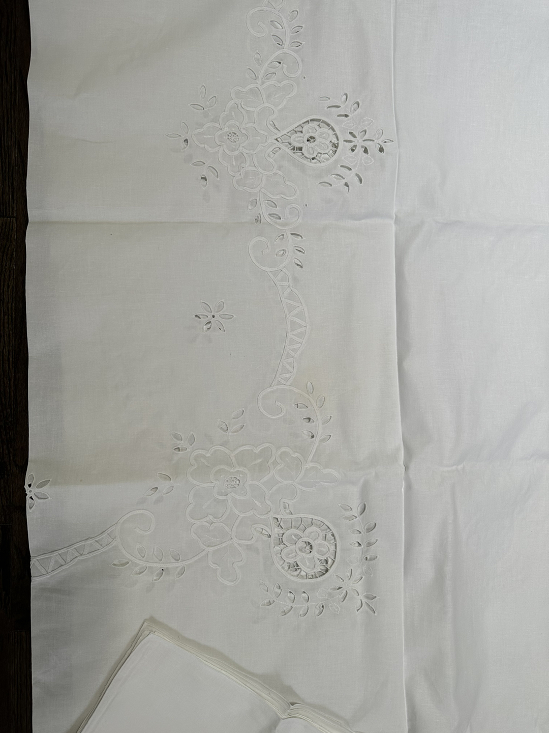 White Classic Cutwork Table Cloth w/12pcs Napkin Set