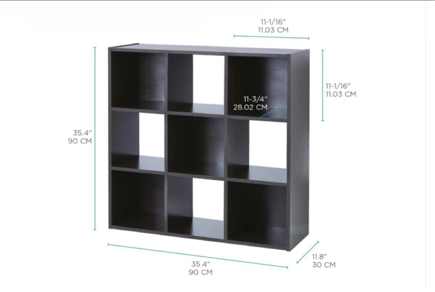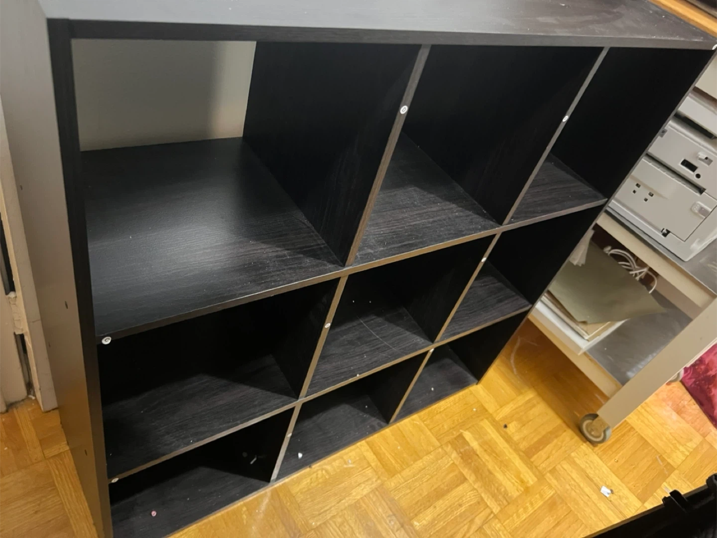 Selling a 9-cube organizer in an espresso colour. The dimensions are 35.4" x 35.4", with each cube measuring 11.8" deep. Perfect for organizing books, toys, or displaying your favourite items No back cover Pick up only Located near Mt. Pleasant and Eglinton Ave East Price firm