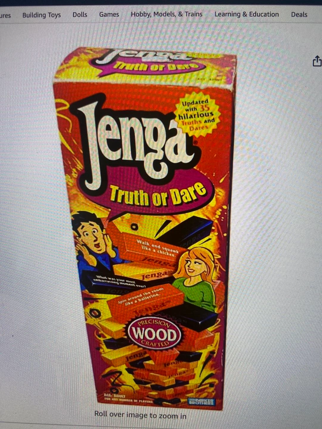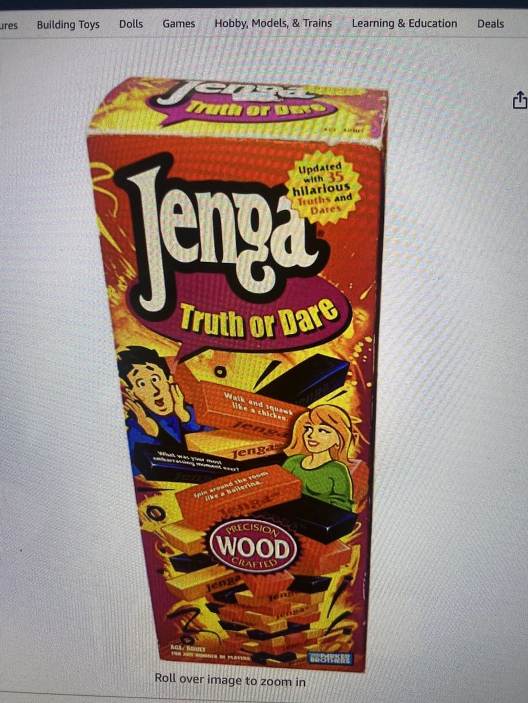 Truth or Dare version of Jenga The original box was destroyed and long gone, however I can and will provide you a box to keep them in if you’d like.