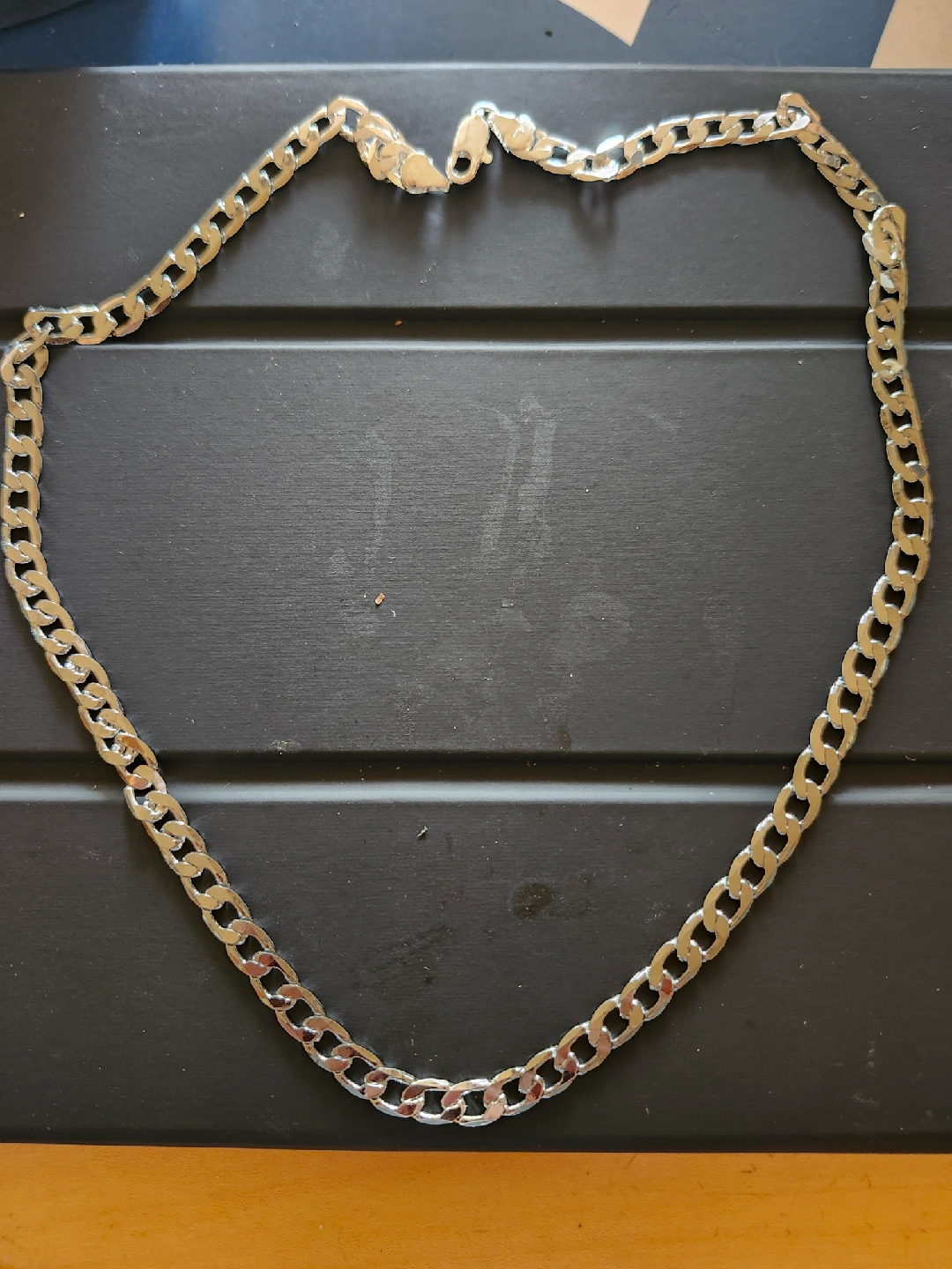 Selling a 925 sterling silver chain necklace. It's in new condition and ready to wear! The chain is a classic design and would look great with any outfit. 22 inches