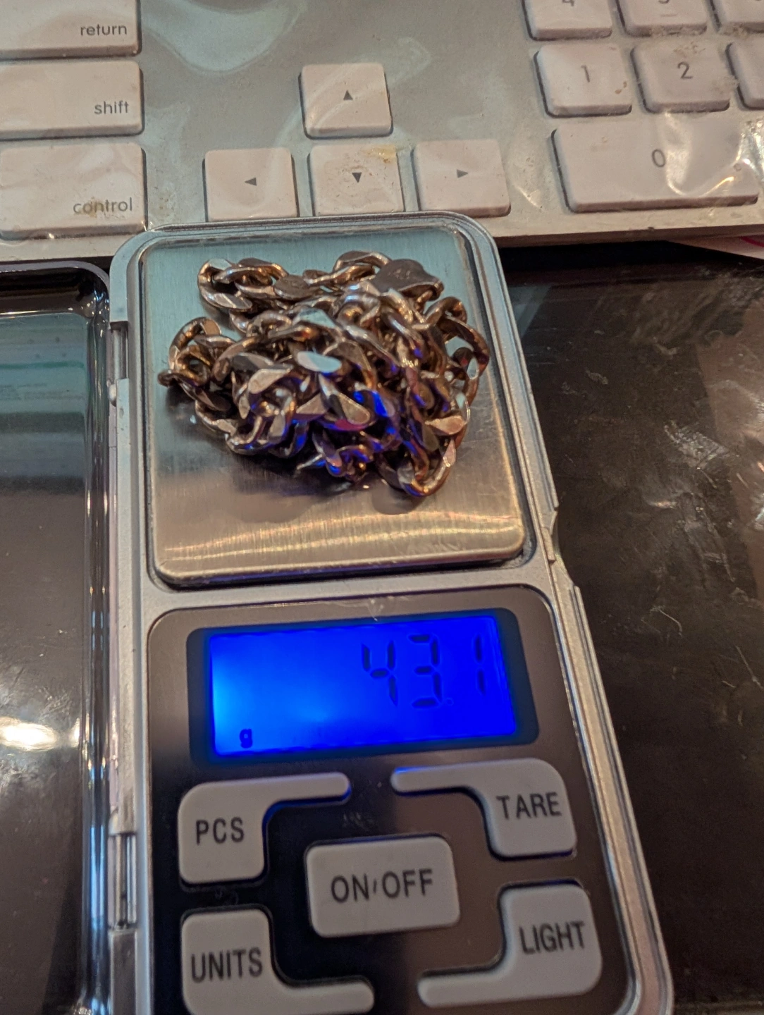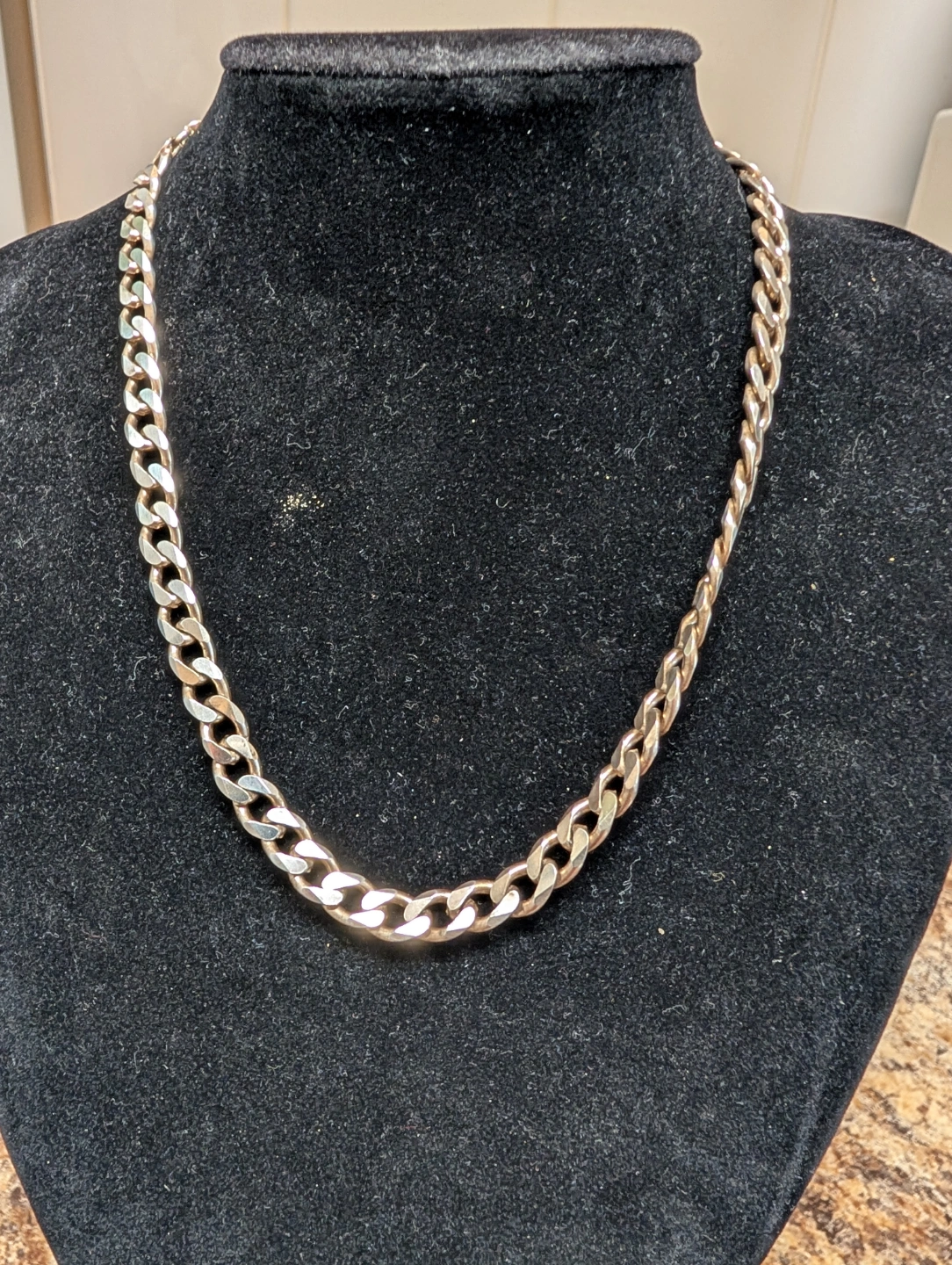 Men's curb chain necklace. Made in Italy. 925 Sterling silver. Approximately 43.1 grams. 18 inches long. Classic design.