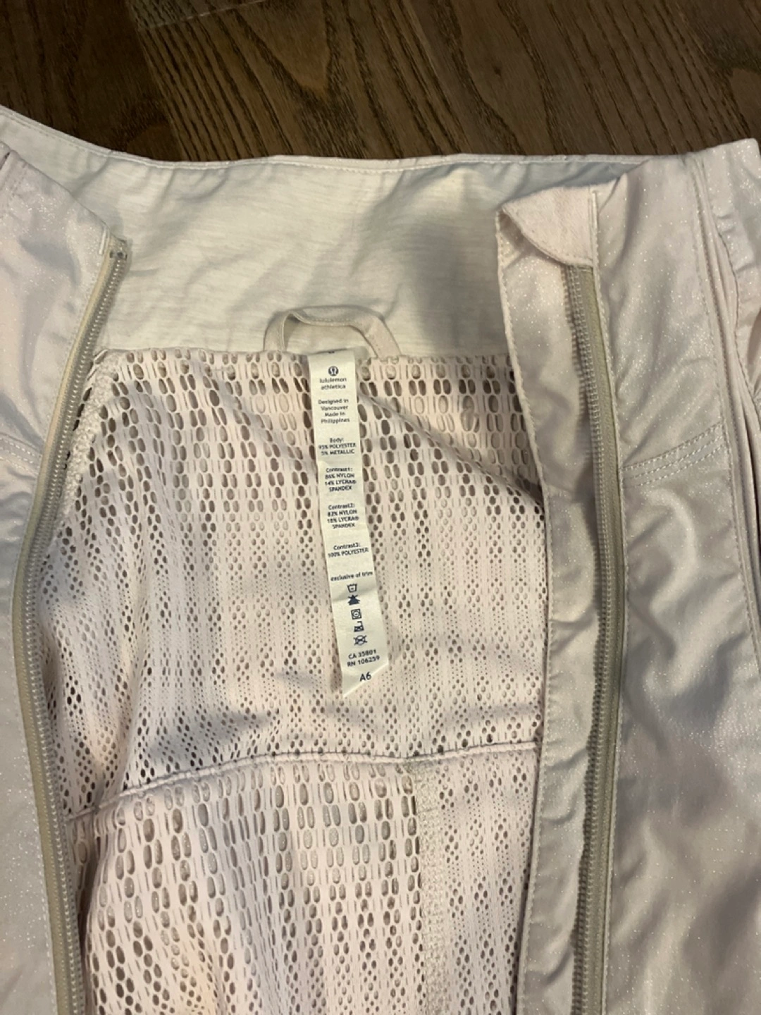 Lululemon size 6 BNWOT Shimmery beige material Great for spring or fall Was too small for me and couldn’t return