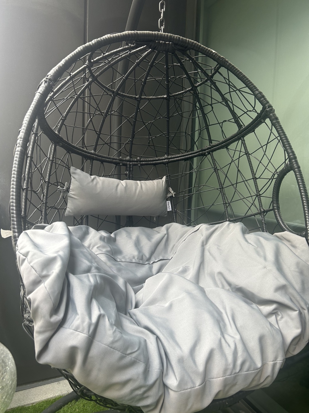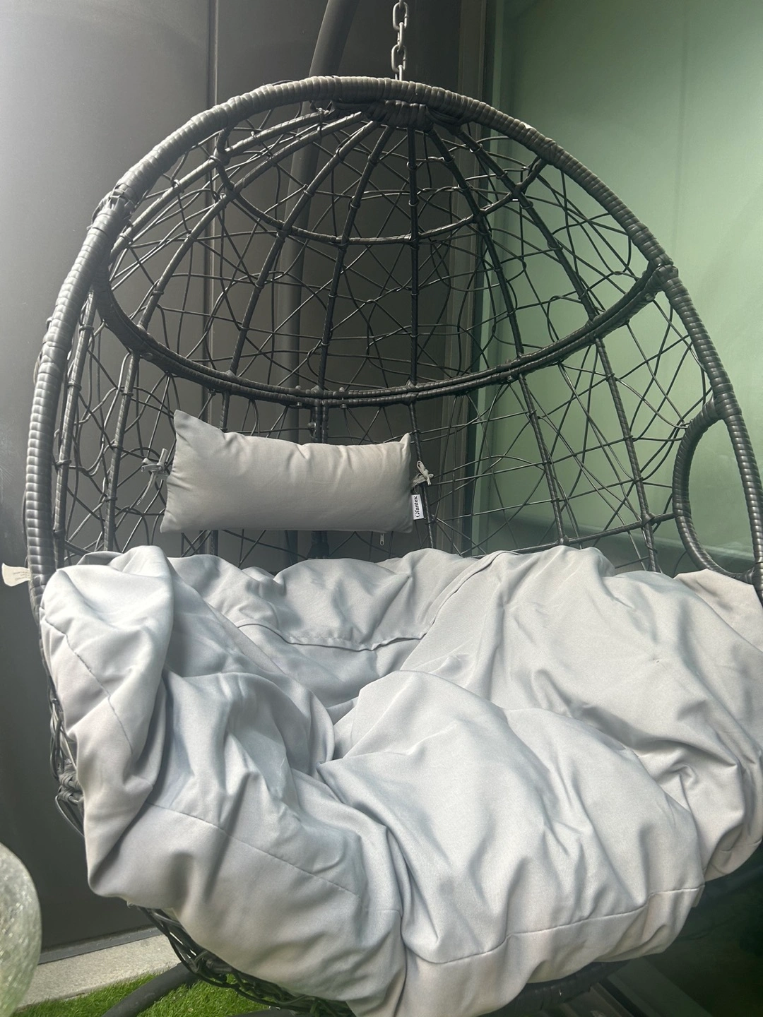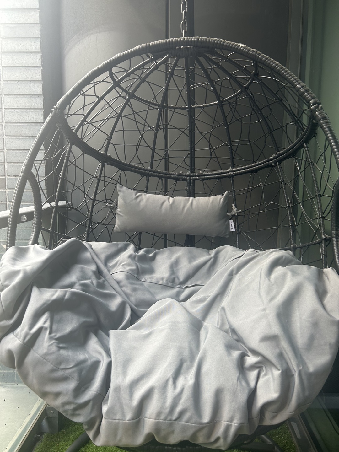 Selling a gently used chair in excellent condition! Bought in late May 2023, so it's nearly brand new. Can be used indoors or outdoors. Constructed with sturdy steel for high weight capacity and extra stability. Comes with a comfortable seat cushion and headrest pillow, both featuring removable inner cushions for easy cleaning. Dimensions: 2.06 meters length x 1.07 meters width. Max weight: 250 pounds. Weight of item: 67 pounds. Seats: 1 person. Available for pickup only. Feel free to DM for additional details!
