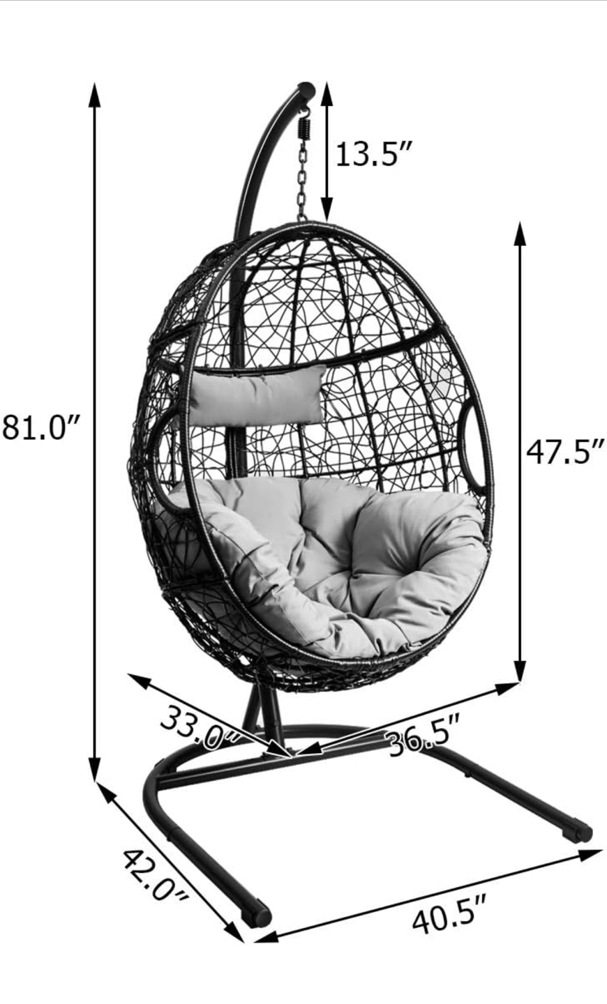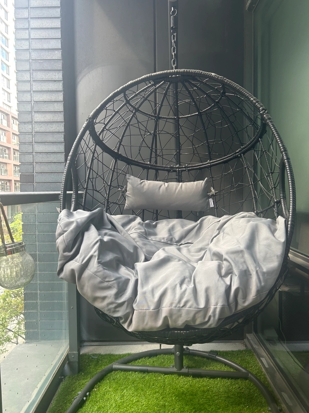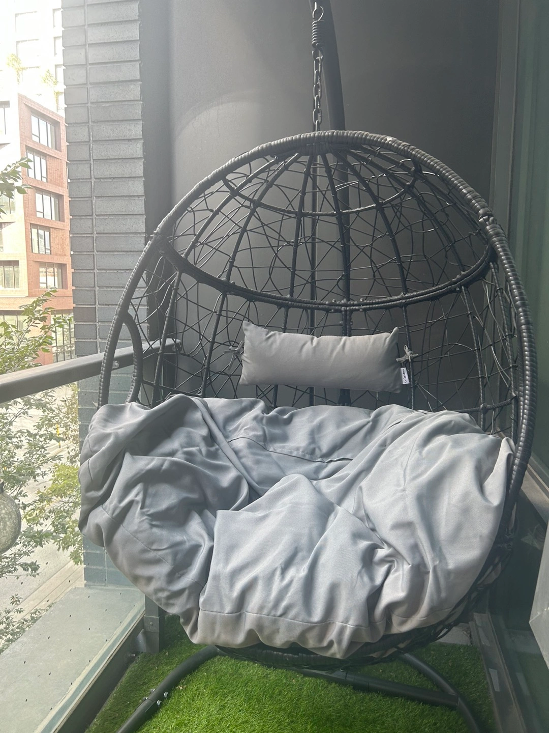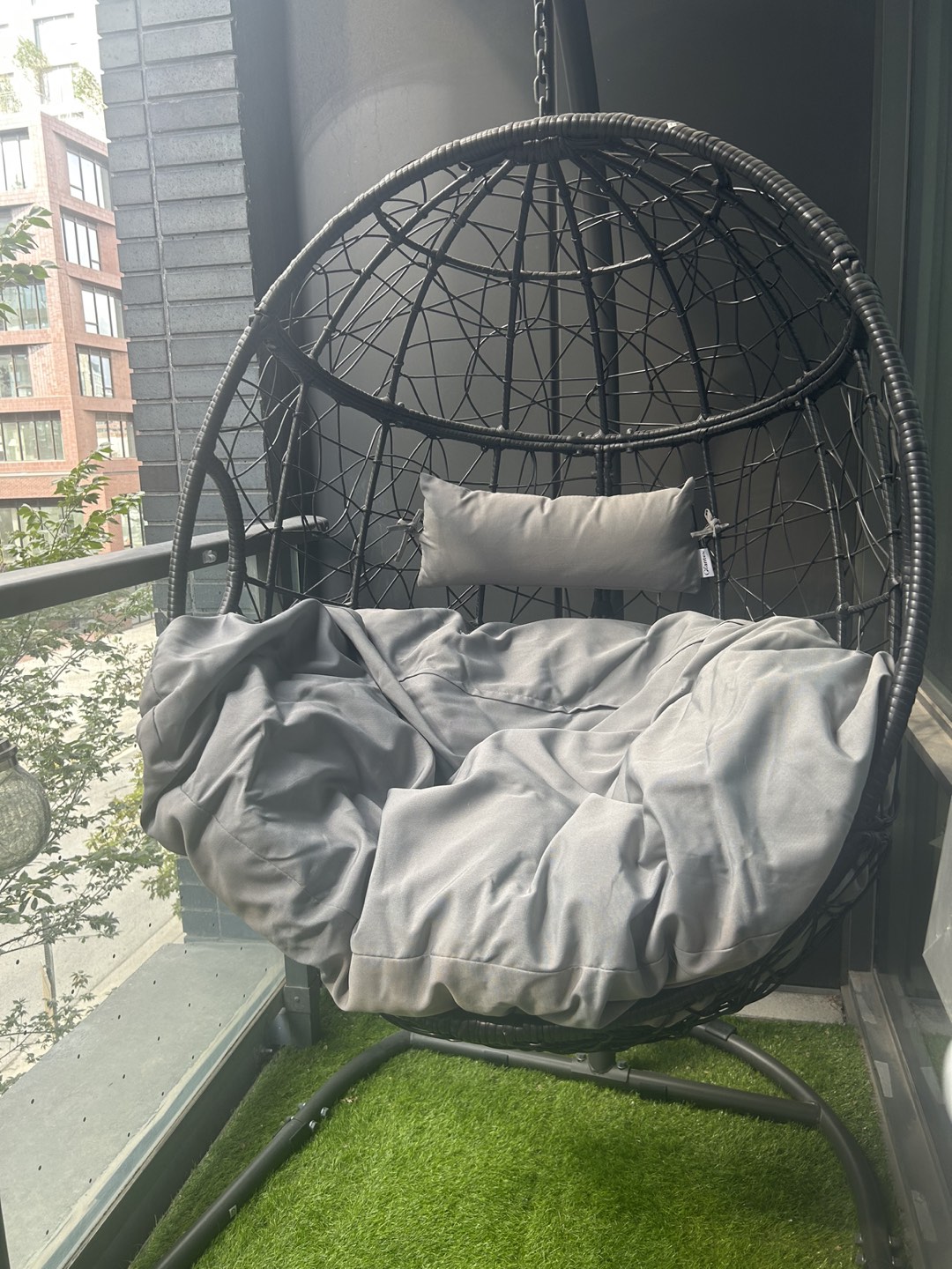 Selling a gently used chair in excellent condition! Bought in late May 2023, so it's nearly brand new. Can be used indoors or outdoors. Constructed with sturdy steel for high weight capacity and extra stability. Comes with a comfortable seat cushion and headrest pillow, both featuring removable inner cushions for easy cleaning. Dimensions: 2.06 meters length x 1.07 meters width. Max weight: 250 pounds. Weight of item: 67 pounds. Seats: 1 person. Available for pickup only. Feel free to DM for additional details!