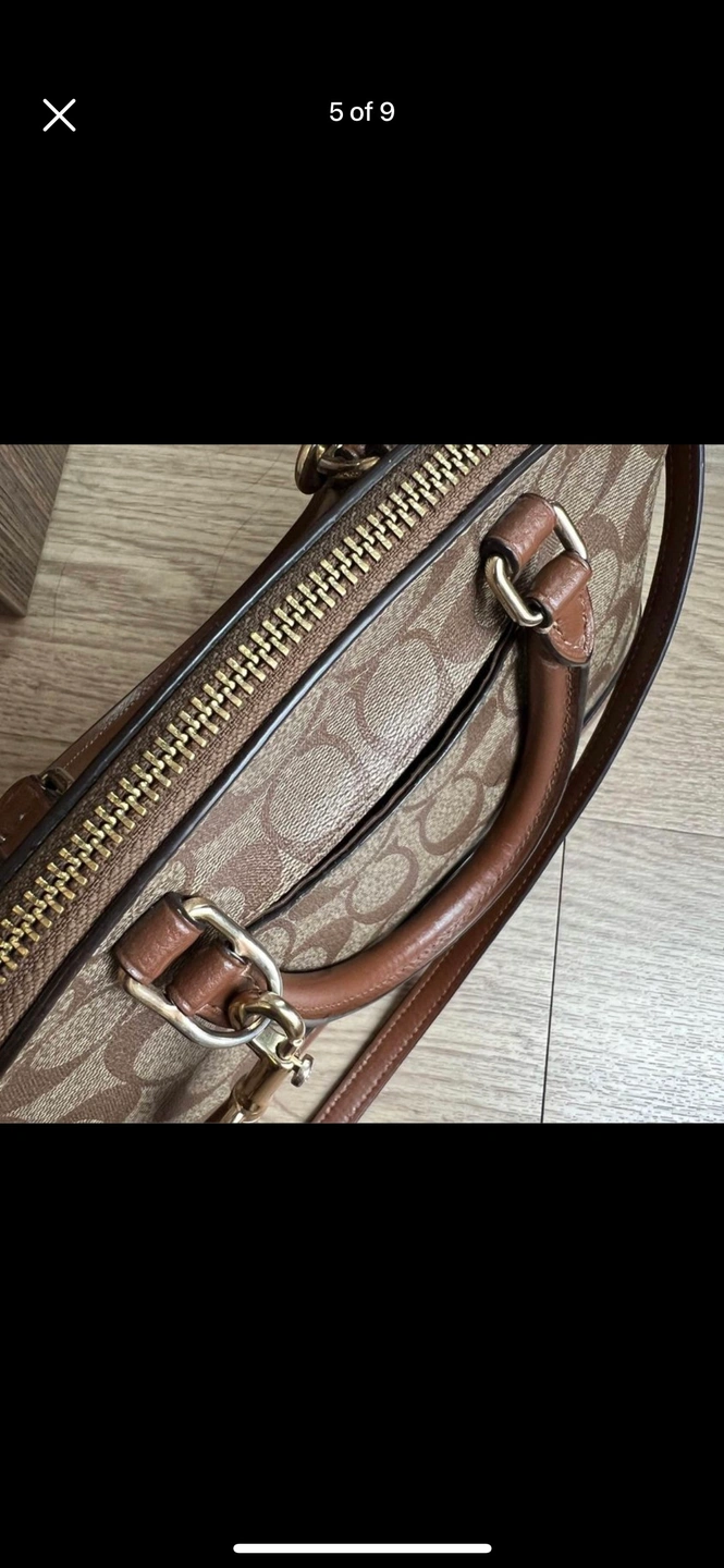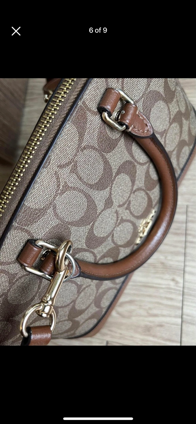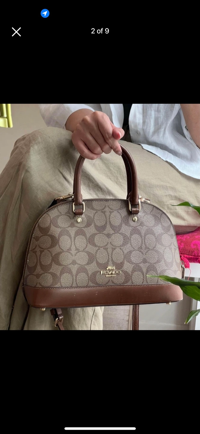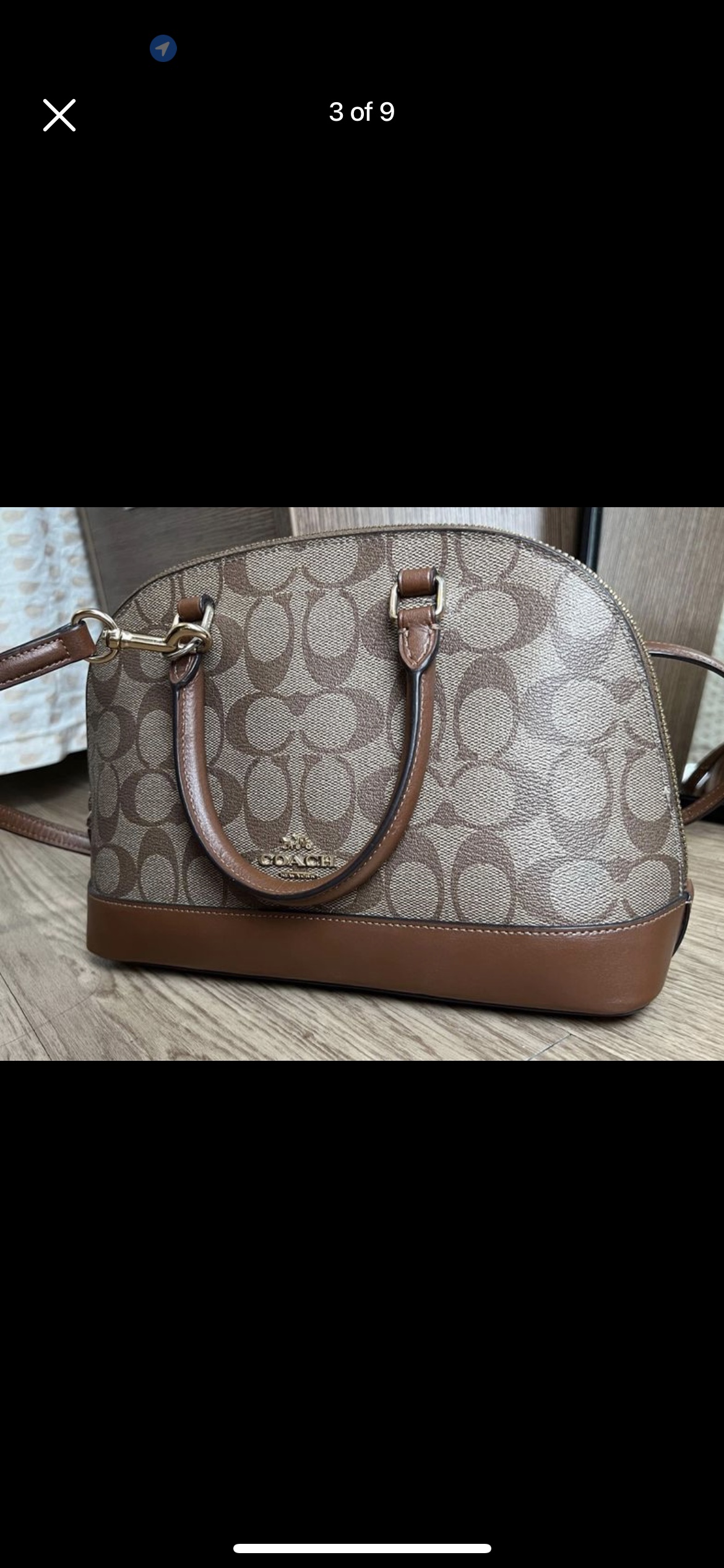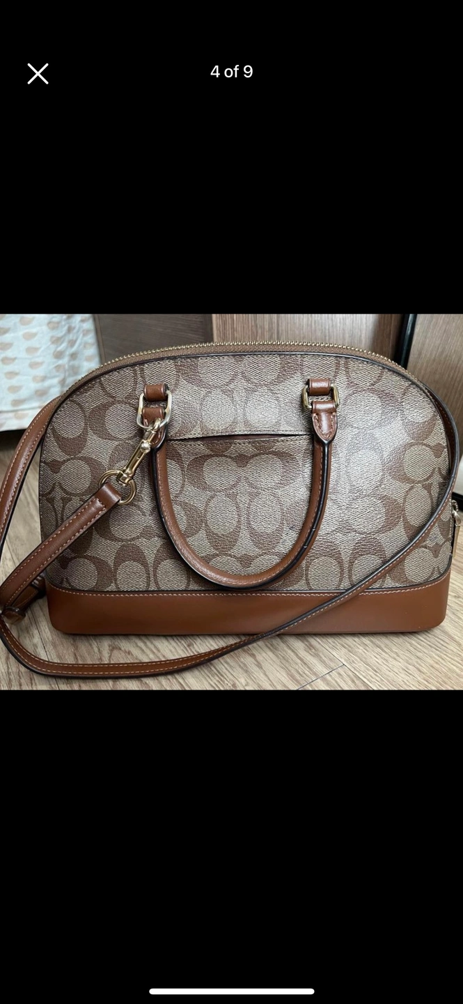 Coach Sierra satchel mini Handles with 3 1/2" drop Outside slip pocket Detachable strap with 21 1/2" for shoulder or crossbody wear 10 1/4" (L) x 7" (H) x 4" (W) Handled with care, in excellent condition. A minor mark on the back that can be easily cleaned.