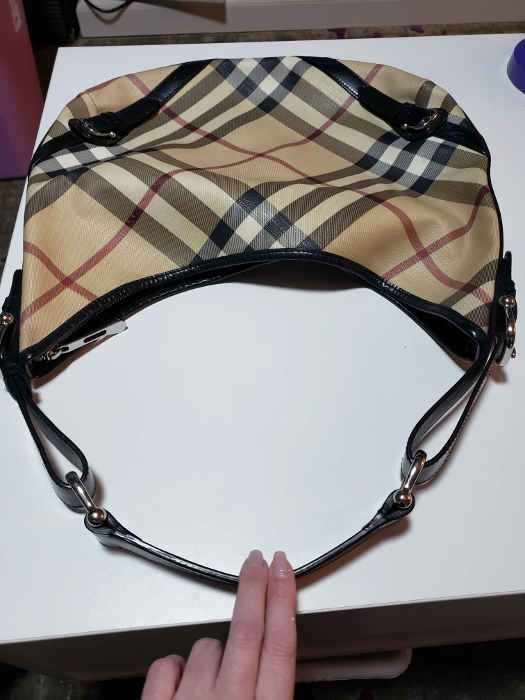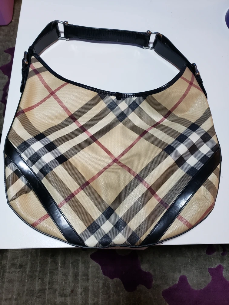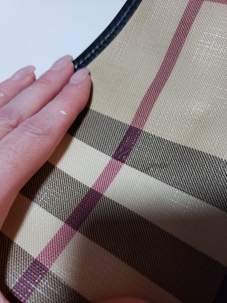 Excellent condition Burberry purse. 12" ruler shown for scale. Super clean interior. There are 4 extremely small areas where the coating has pulled away (as shown in pics), but there are no rips, it's only visible when looking closely. Pick up in south Ajax.
