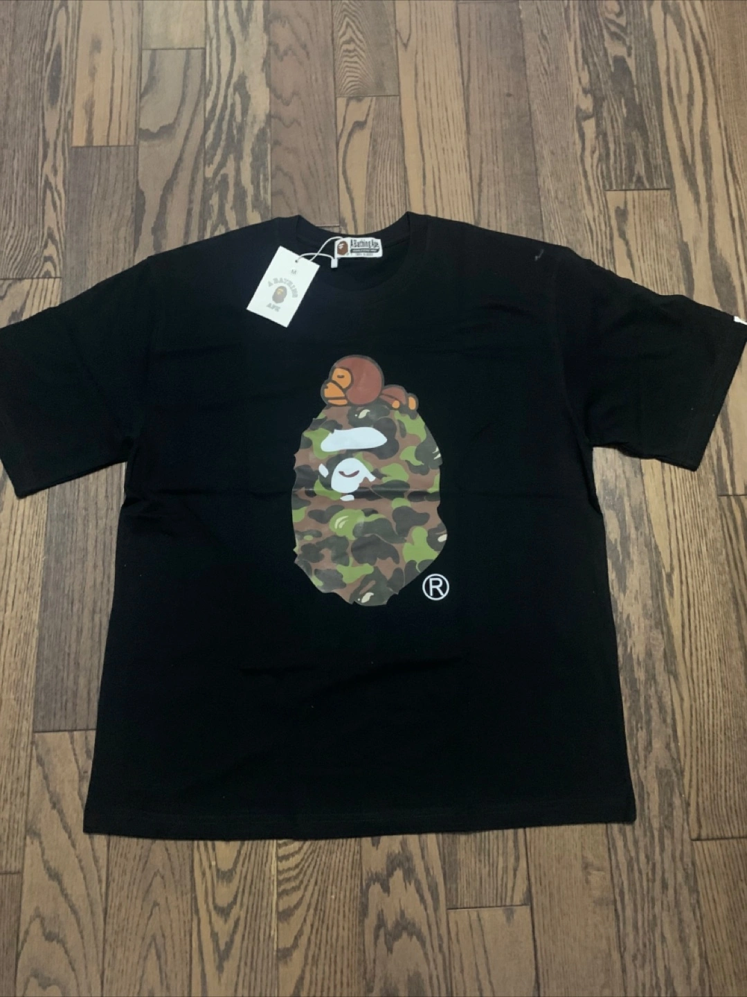 Selling a BAPE black t-shirt with a camo ape head graphic! It's size M and made of 100% cotton. The shirt is in great condition. This is a Brand new Bape T-Shirt Camo that’s a Medium Size. Completely new and still have packaging bag. Shipping✅ Reliable ✅ Quick responses✅ all sales are final***
