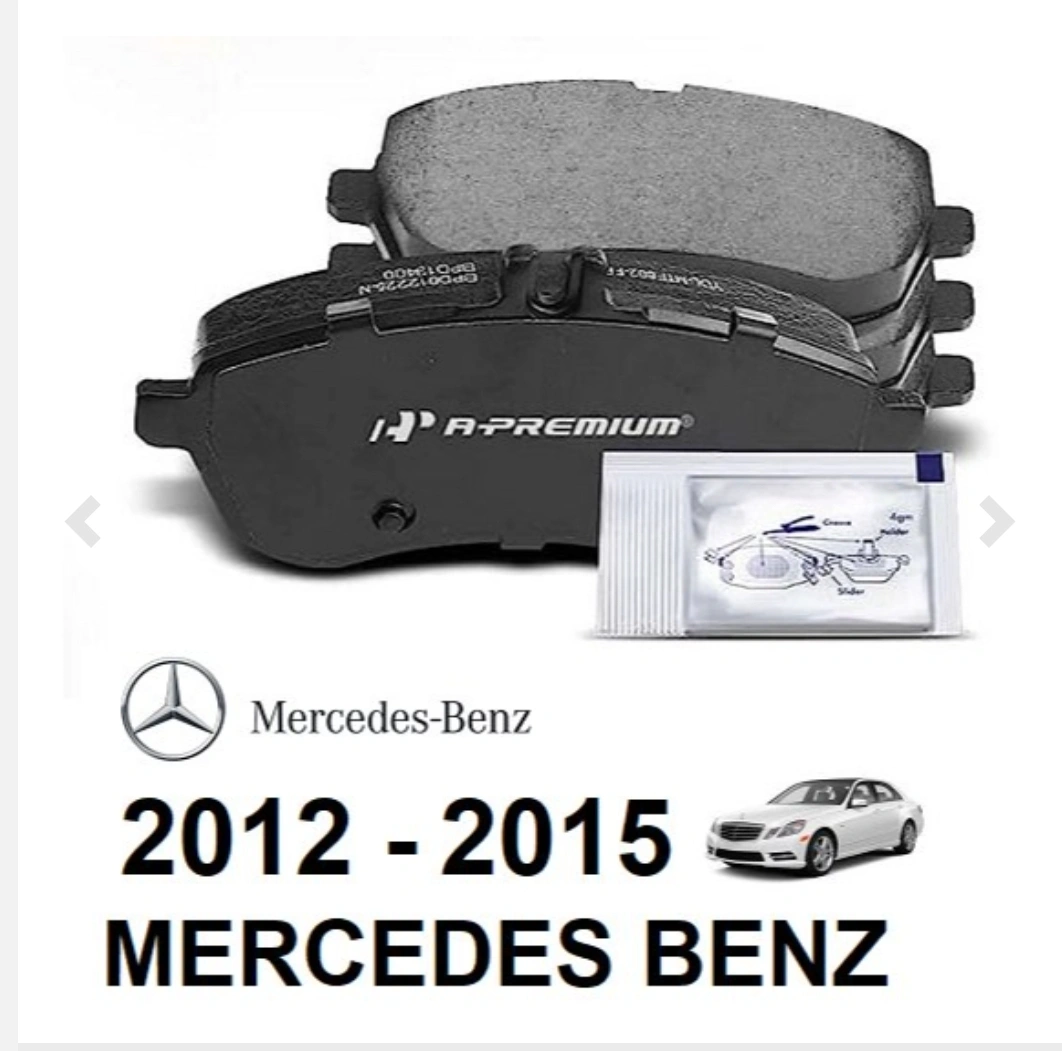 Selling a set of A-Premium ceramic brake pads compatible with Mercedes-Benz models from 2012-2015 without the sport package. These are designed for the front left and right (driver and passenger side). Rotor material is cast iron and the pad friction material is ceramic. Includes brake lubricant and a set of six pieces