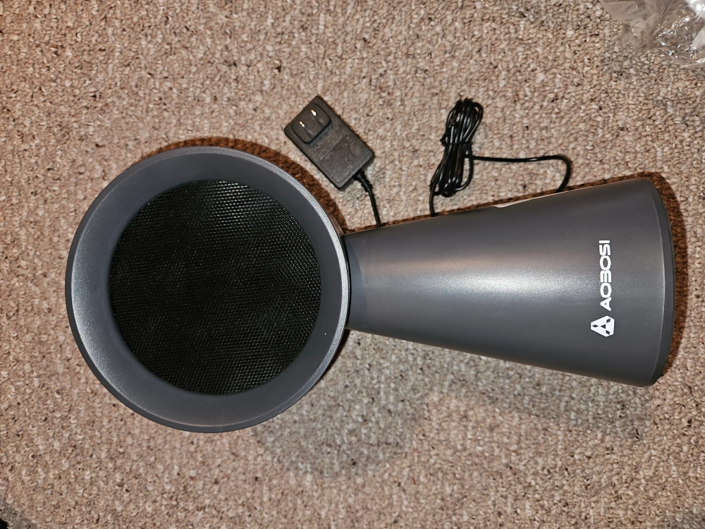 Selling an Aobosi desktop kitchen exhaust low noise fan with 3-speed. It is equipped with a large oil collection cup! It's in great shape and perfect for keeping cool on your desk or bedside table. The fan has three speed settings and comes with its power adapter and brand new replacement filters.
