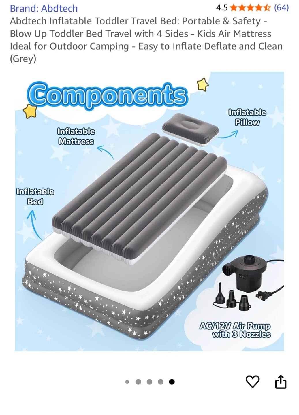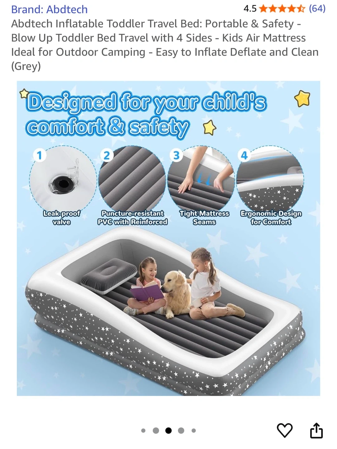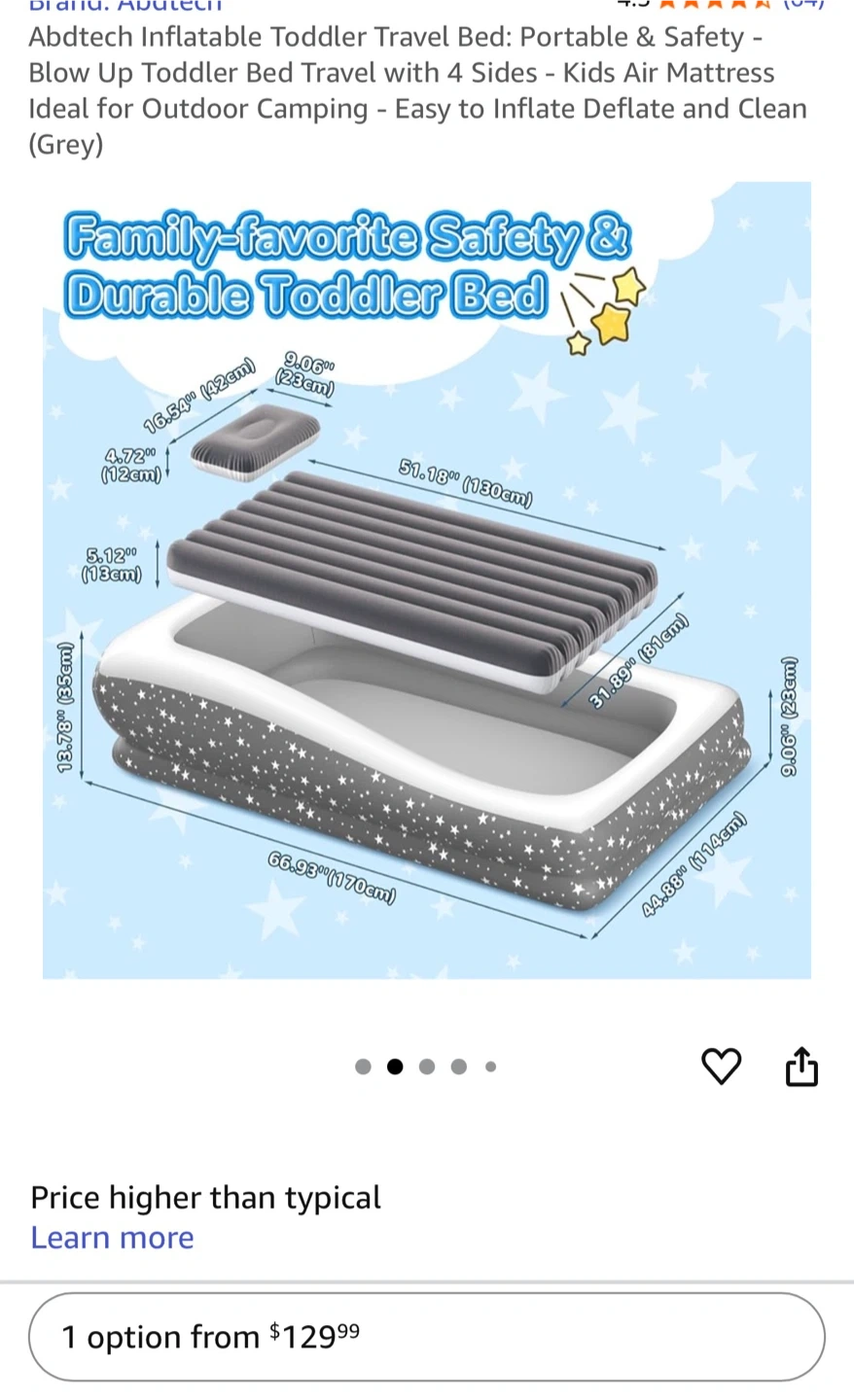 This Abdtech inflatable toddler travel bed is perfect for camping or sleepovers! It's designed for your child's comfort and safety, with built-in 4-sided bumpers to prevent falls during sleep. The bed features a leak-proof valve, puncture-resistant PVC with reinforced seams, and an ergonomic design. It also comes with an inflatable pillow and an AC/12V air pump with 3 nozzles for easy inflation and deflation It’s new…original price 130$