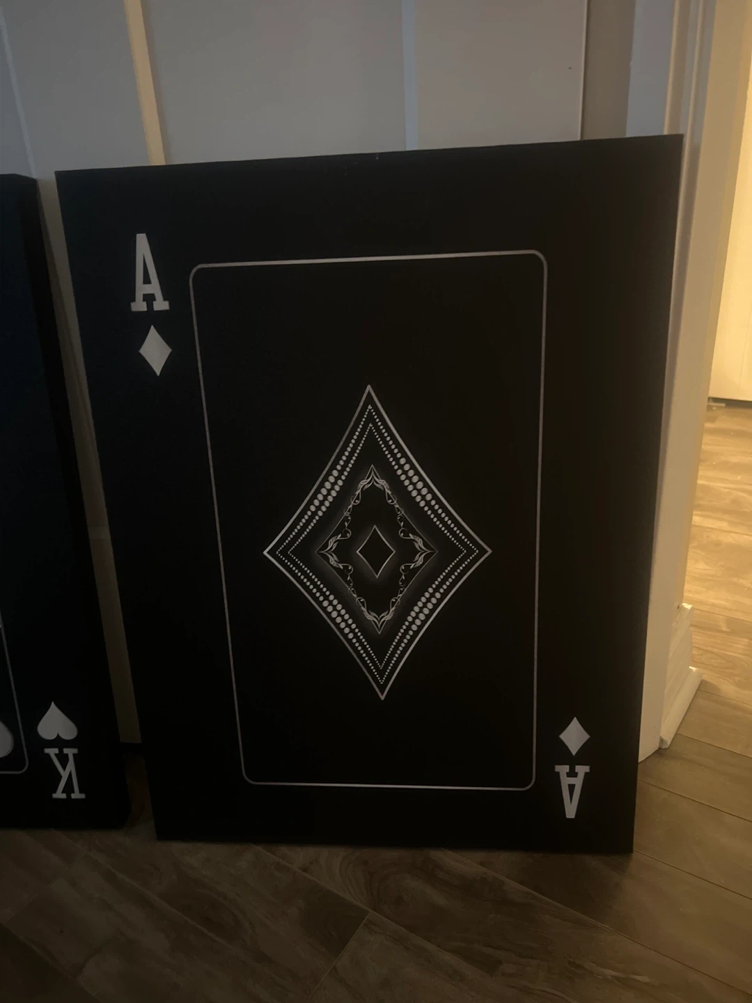 Selling a cool piece of wall art featuring the Ace of Diamonds. It's a black canvas with white detailing, and it would look great in a game room or any modern space