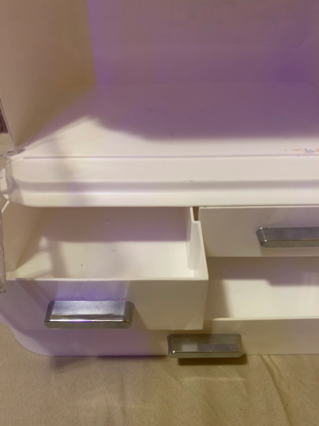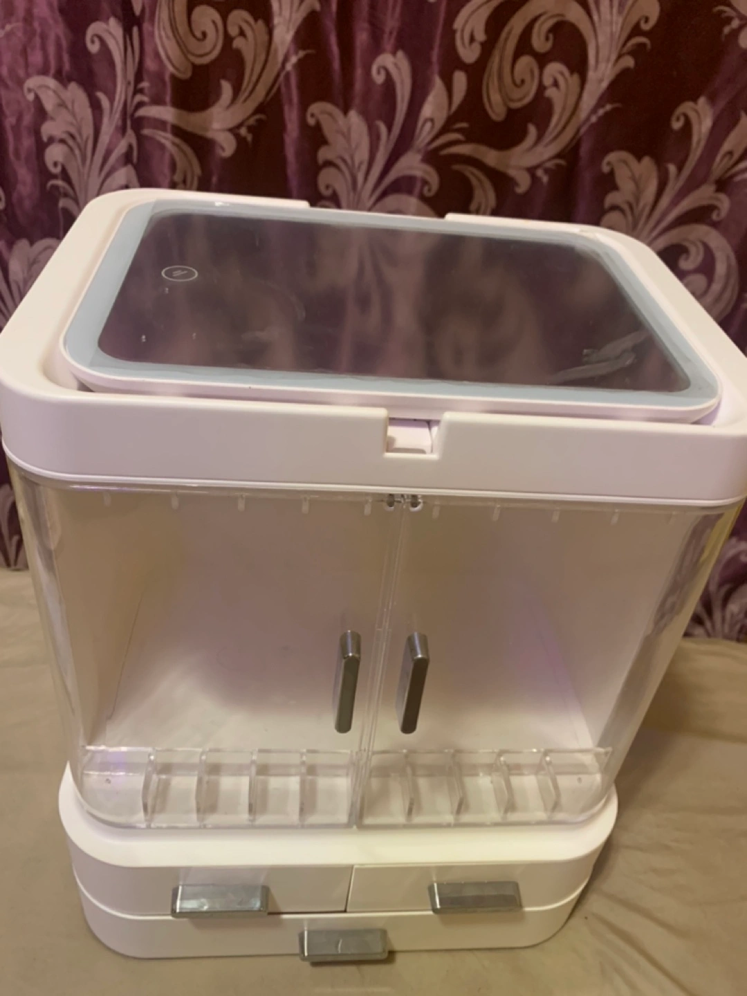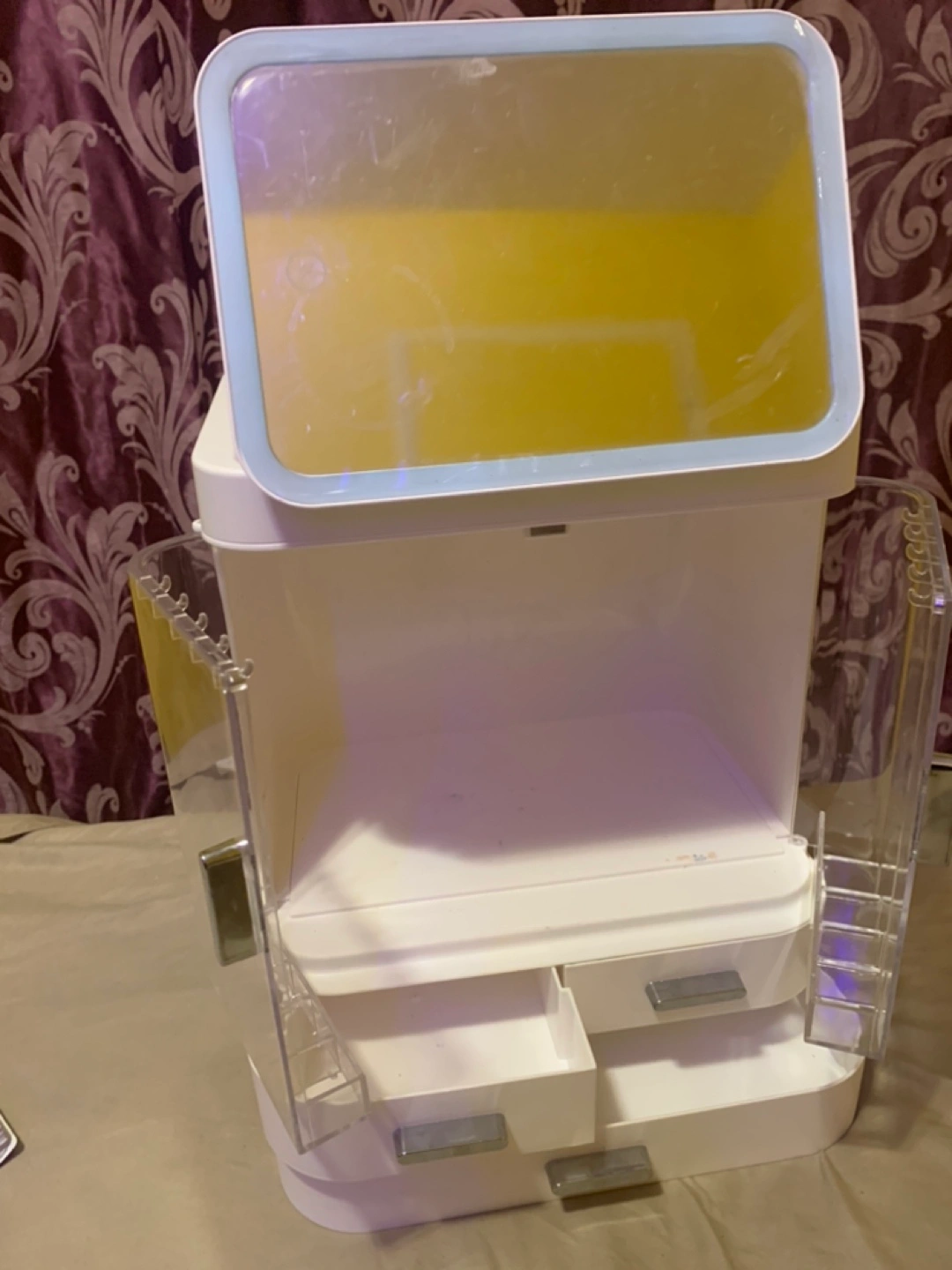 Selling a handy acrylic makeup organizer with USB light mirror! It's perfect for keeping all your cosmetics neat and tidy on your vanity or bathroom counter. It features a clear design so you can easily see all your products. Great for anyone looking to declutter their space